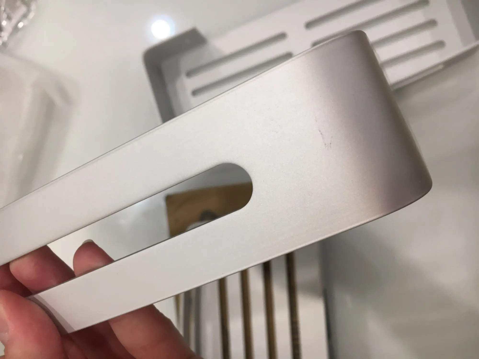 Статья, которая выглядит хорошо. Это создает впечатление! Просто недостаток, винты легко царапаются, поэтому необходимо быть осторожным, поставив его столько, сколько вы не можете изменить их, так как он сделан, чтобы вместить черную крышку, что делает их невидимыми! Кроме того, я подчеркиваю эту деталь, которая делает его еще более стильным!