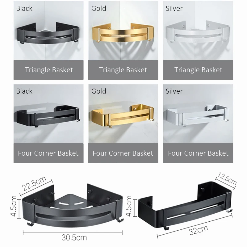 Пространство Алюминий Ванная комната Полки Шампунь Мыло косметический Полки Аксессуары для ванной комнаты хранения Организатор держатель