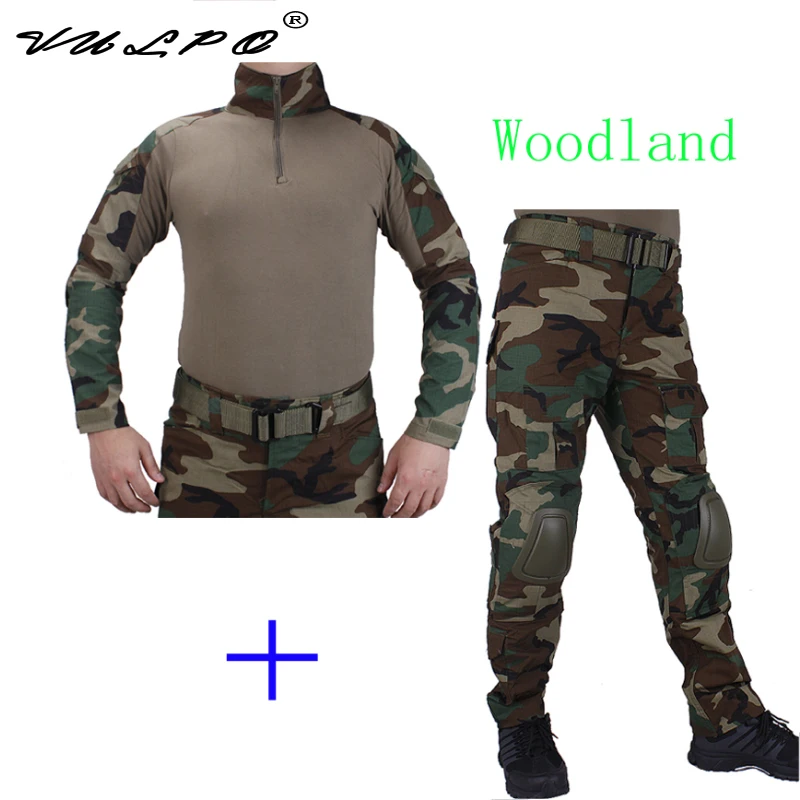 Вулпо Охота Камуфляж BDU лесной боевой Униформа Рубашка Met Broek En Налокотники и наколенники военный Ghilliekostuum Jacht
