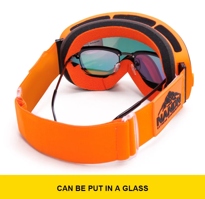 ·Надевайте очки (OTG)NANDN SNOW Goggles имеет дизайн OTG (поверх очков), который позволяет носить очки под очками.
