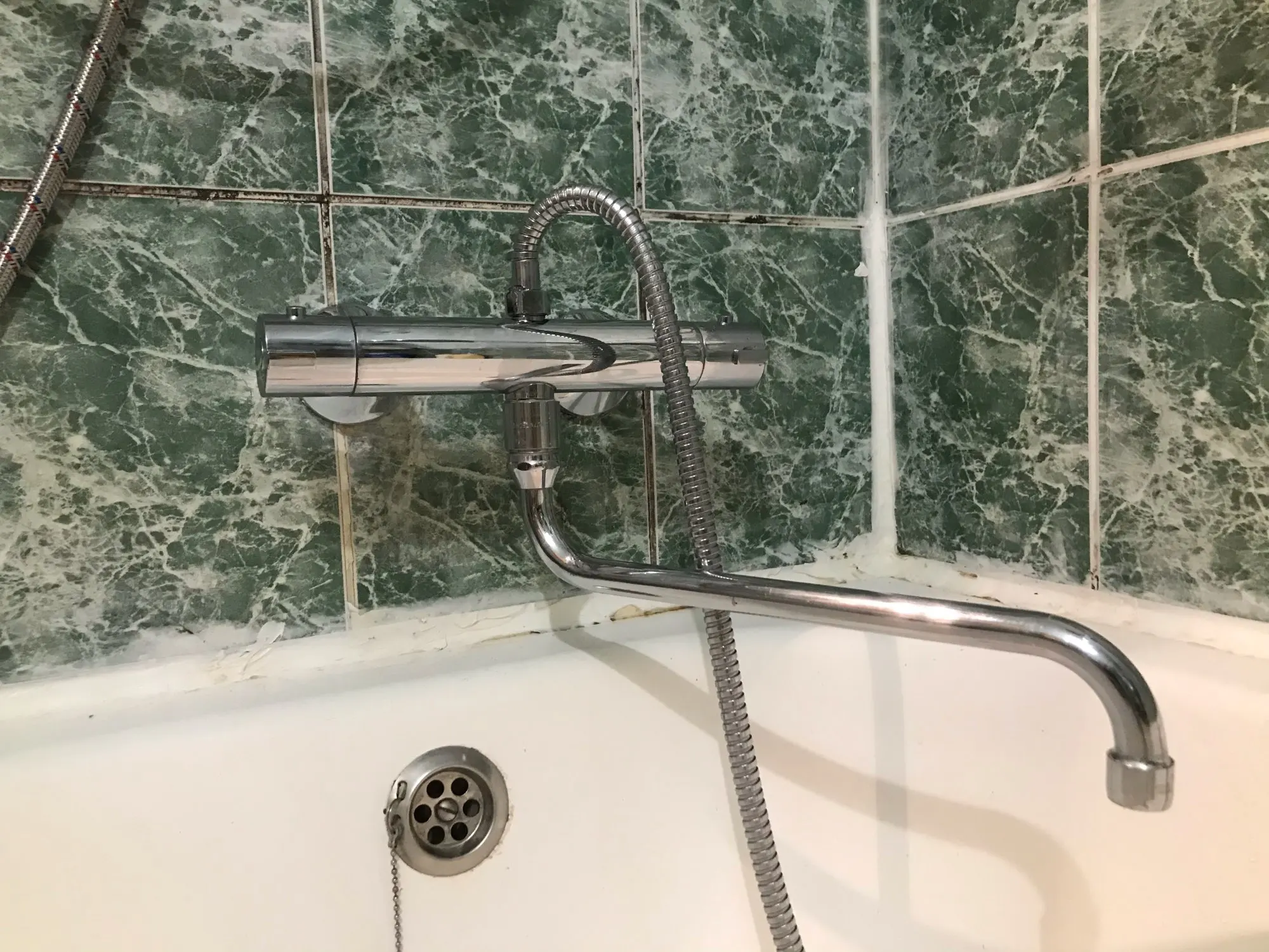 Симпатичный, тяжелый, заказал сразу у продавца с выходами вверх на душ и вниз на гусёк. Так как слева подводка холодной воды, а справа горячей. Супер быстро доставили курьером в Москве, в четверг заказал, а в субботу уже привезли!!! Старый смеситель снял, новый поставил за 10 минут. Работает как нужно, температуру держит как нужно, реагирует за пару секунд к смене температуры. Старый гусёк не подошёл, буду покупать новый.