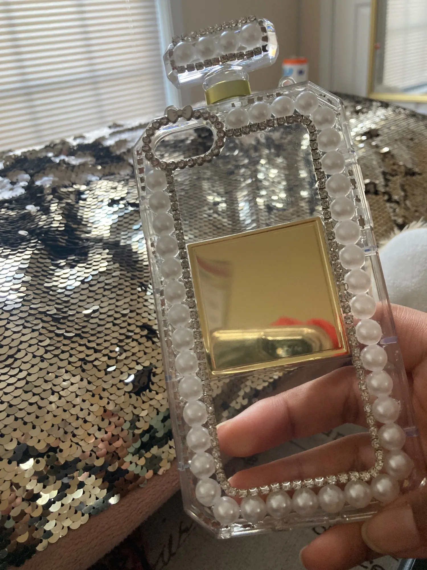 Сначала чехол для телефона был красивым и в хорошем состоянии. К сожалению, через неделю Драгоценности начали снижаться. Чехол для телефона слегка Согнут в верхней части, и он немного не обеспечивает защиту от вашего телефона.