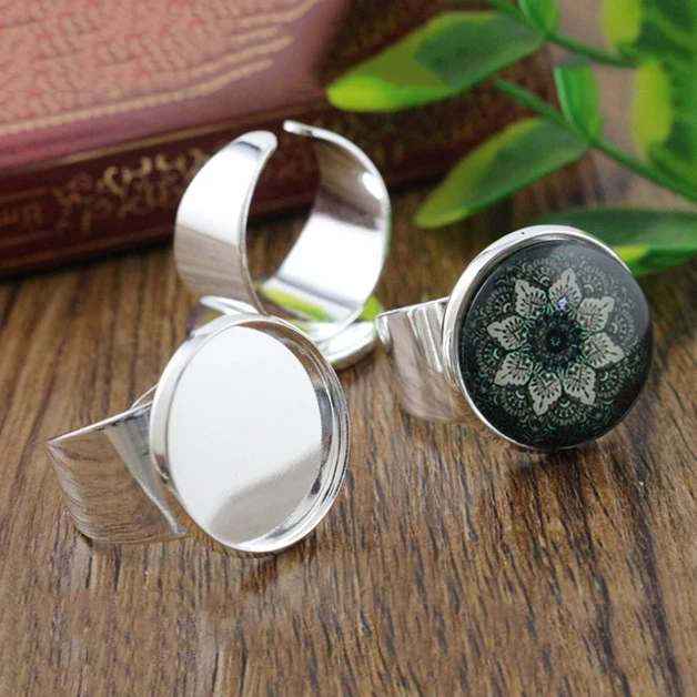 14 мм 16 мм 18 мм яркие посеребренные бронзовые латунные регулируемые настройки кольца пустыеоснование подходит 14-18 мм Стеклянные Кабошоны, кнопки оправы