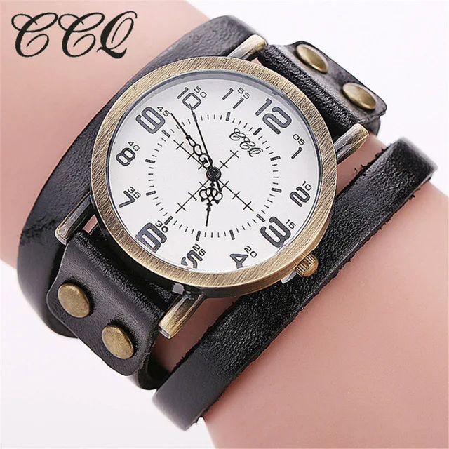 Часы наручные CCQ женские кварцевые, винтажные Роскошные повседневные с браслетом из воловьей кожи