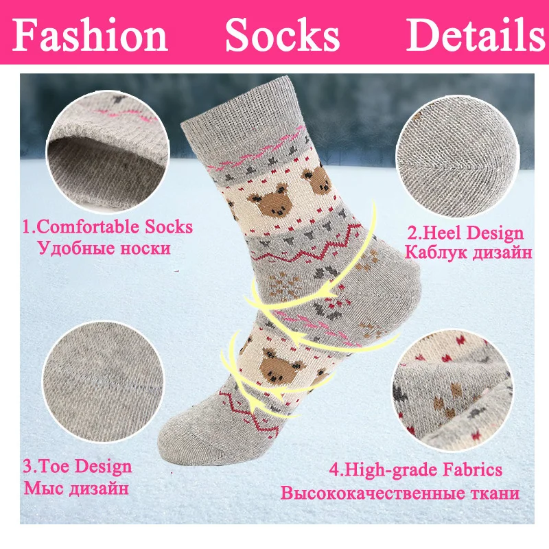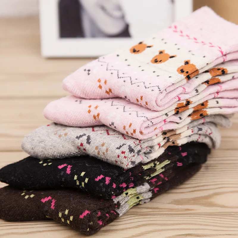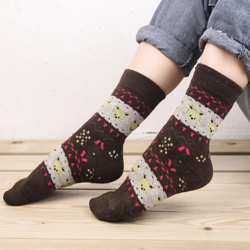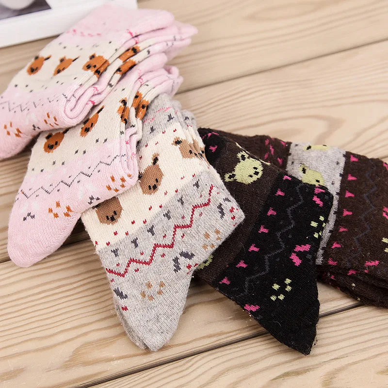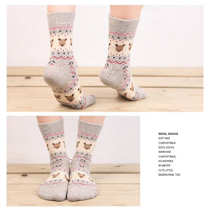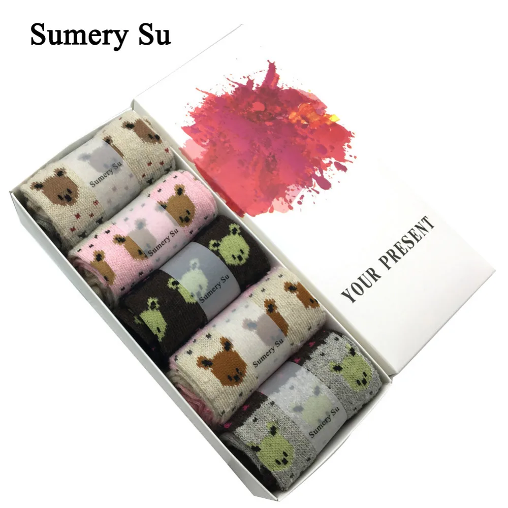 5 парпартия шерстяные носки теплые зимние женские дизайн с милым медведем вязаный кашемировый дышащие носки, подарок для любимой, гипоаллергенно жена мать