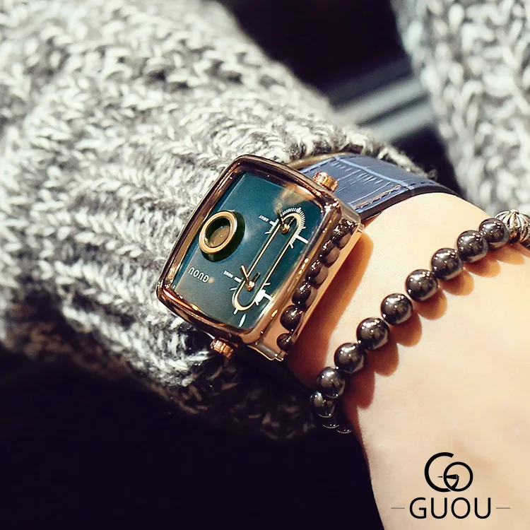 Guou Модные женские аналоговые наручные часы с квадратным циферблат...