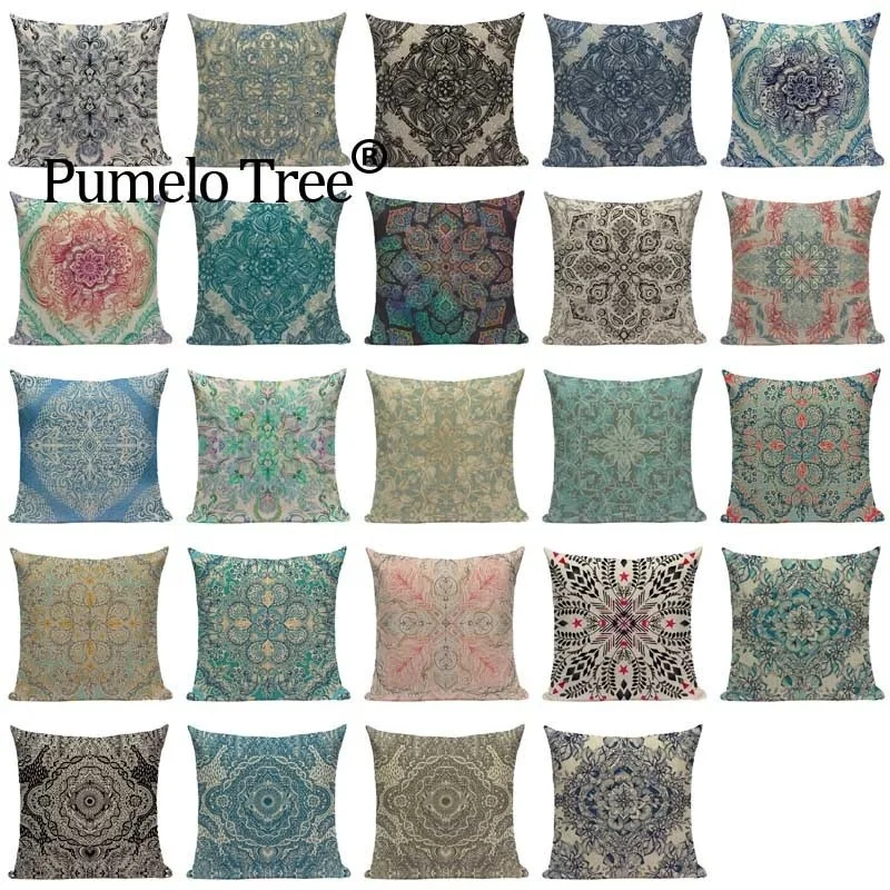 Цветочный принт, богемный, индийский стиль, наволочка для спальни, автомобиля, хлопок, лен, домашний декор, диван, винтажный, на заказ, наволочка, чехол