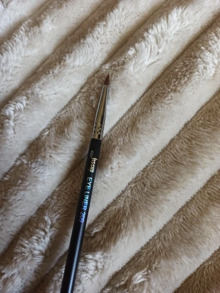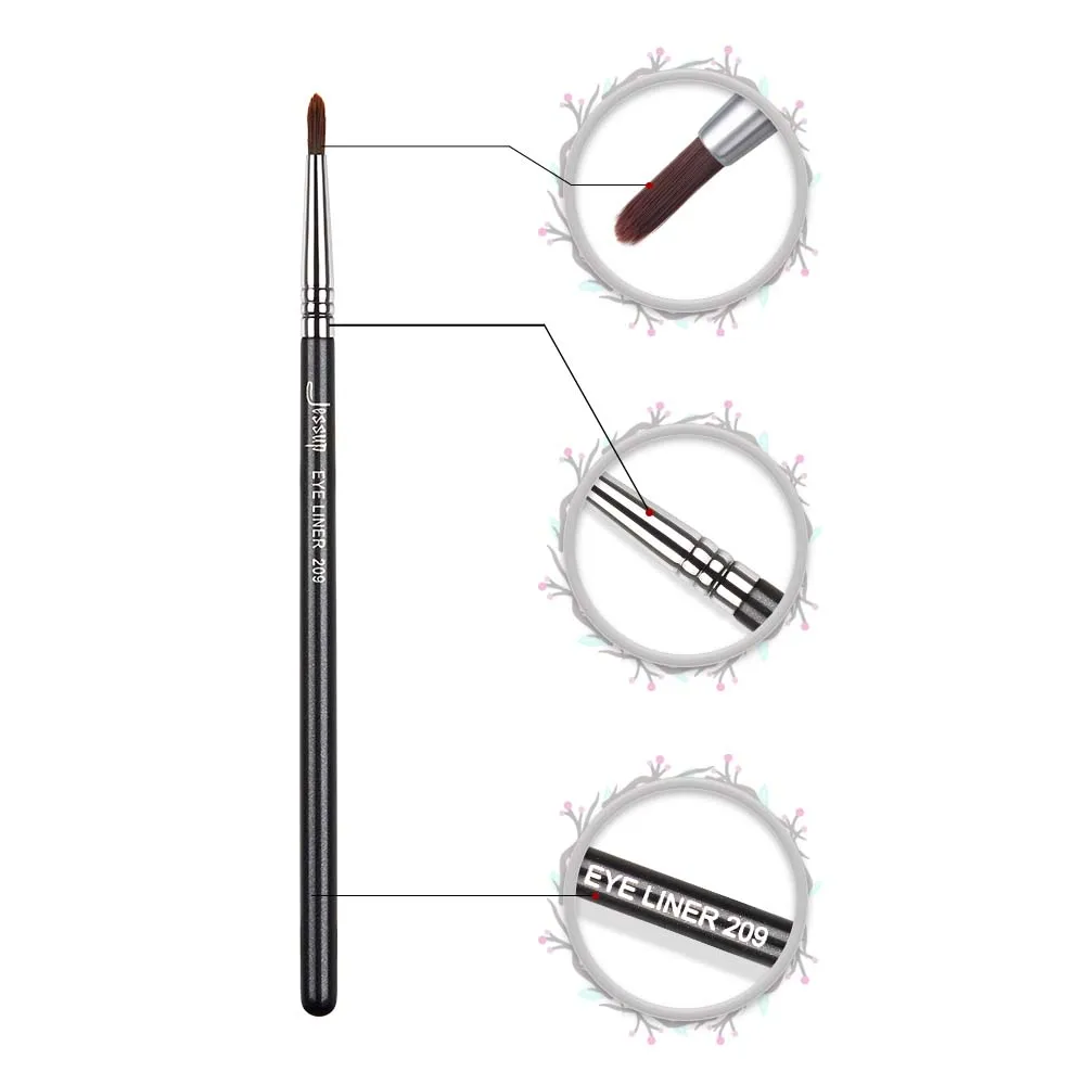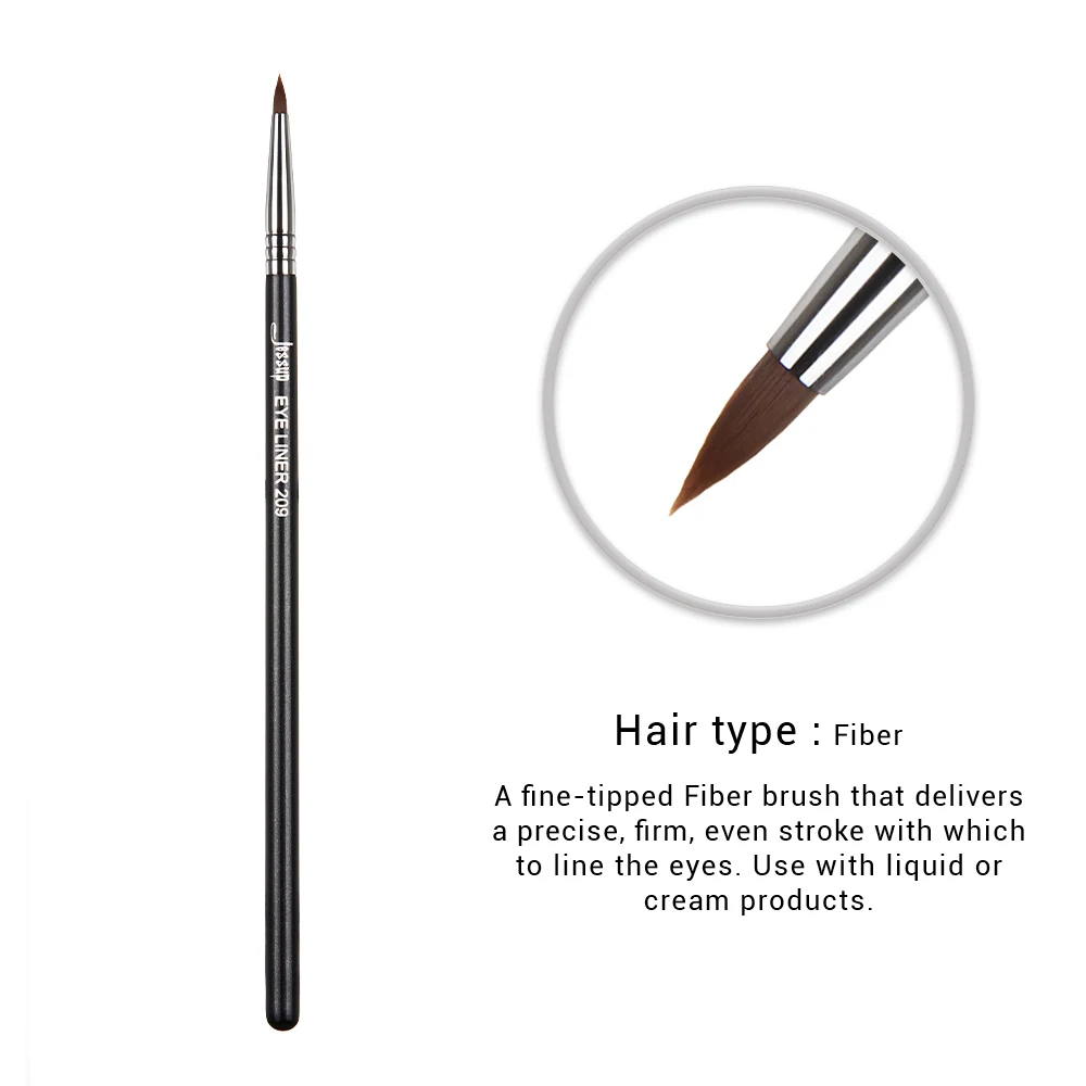 Подводка для глаз-209: Длина кисти: около 15,5 см длина кончика: около 1,0 см ширина кончика: около 0,2 смТип рукоятки: деревотип волоса: волокноКисть из синтетического волокна с тонким кончиком обеспечивает точное, твердое и гладкое нанесение штрихов на глаза. Используется с жидкими или кремовыми косметическими средствами.