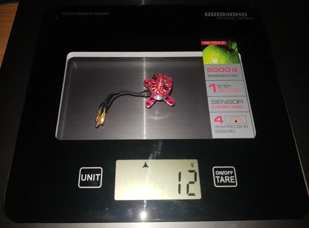 Упакован был очень аккуратно: моторчик и комплектующие расфасованы по пакетам и упакованы в коробочку, которая в свою очередь замотана в пупырчатую плёнку, и всё это упаковано в еще одну плотную коробку! Моторчик работает. Кухонные весы показали целых 13 граммов вместо заявленных 9г.