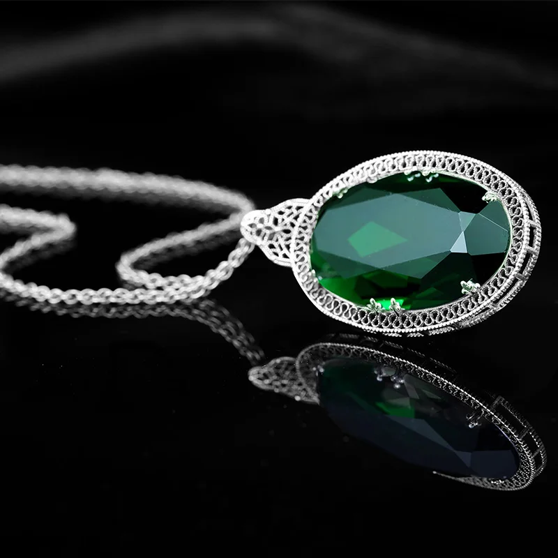 Женское ожерелье из серебра 925 пробы с изумрудом