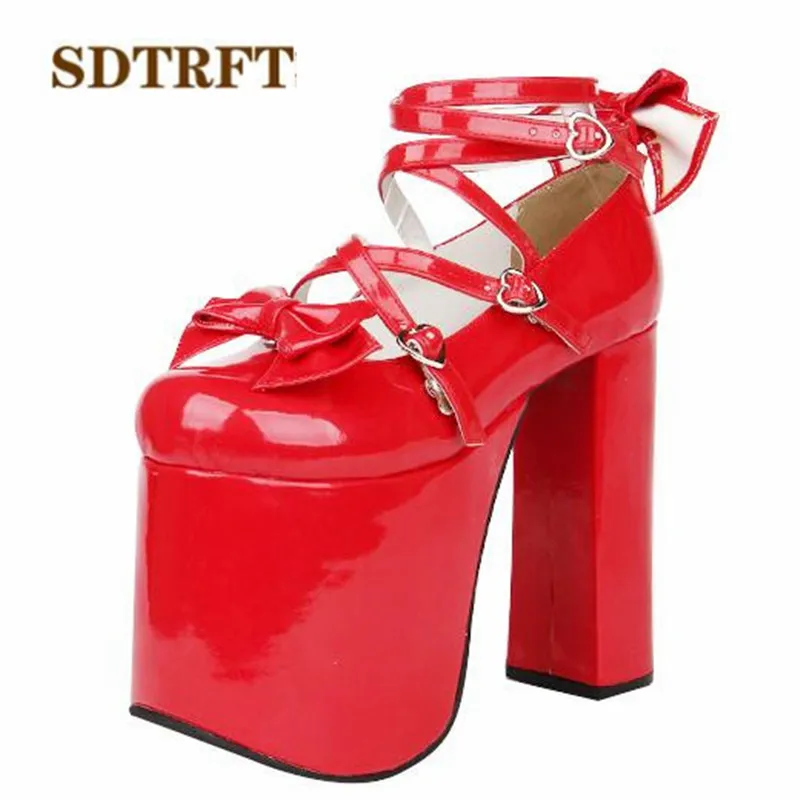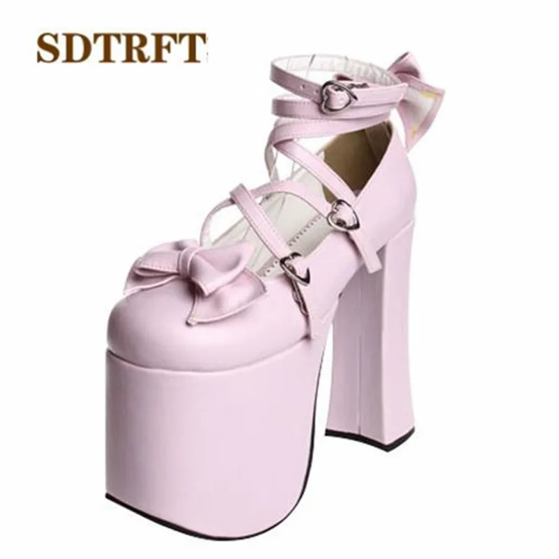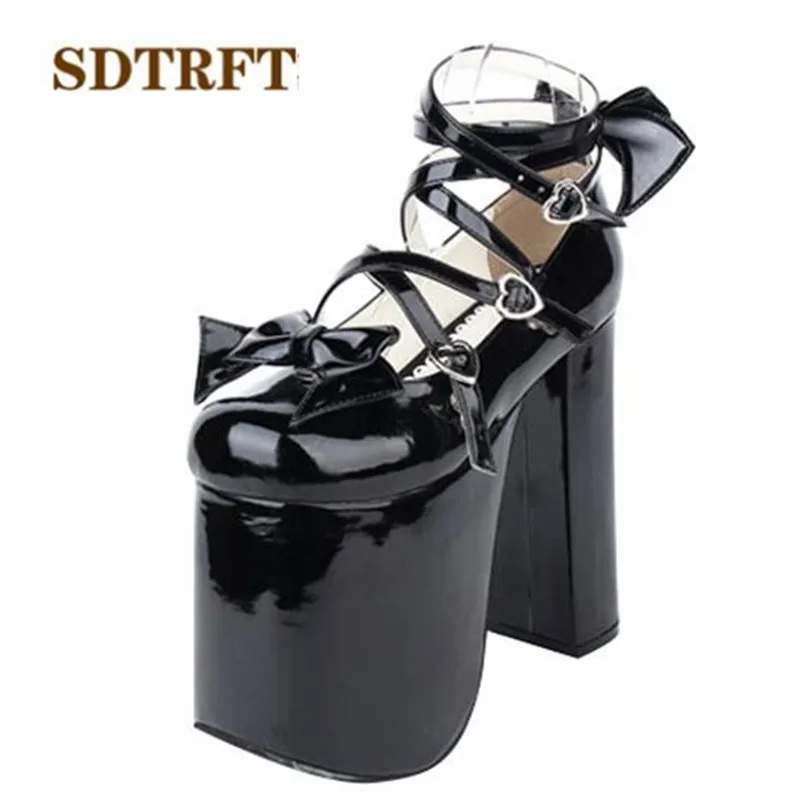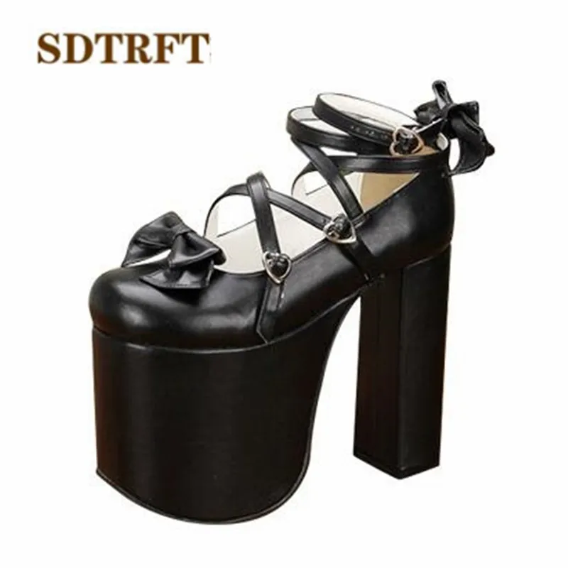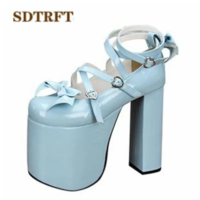 Туфли SDTRFT женские на очень высоком толстом каблуке 15 см, босоножки с круглым носком, милые Лолиты, королевская обувь с перекрестными ремешками, US13 14 15 16, веснаосень