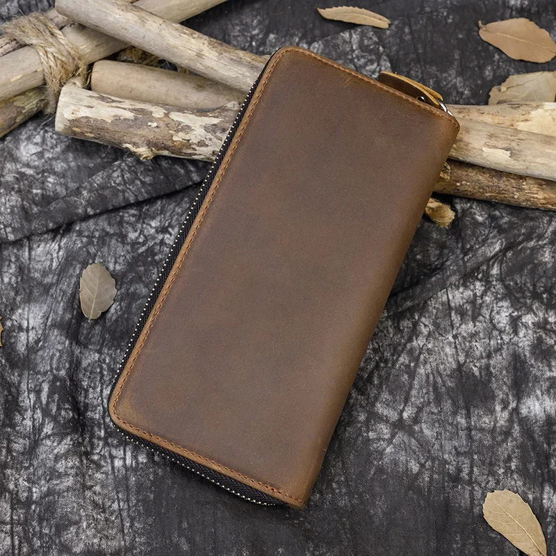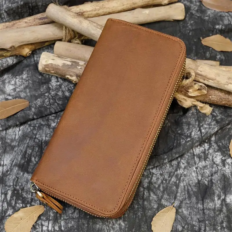 Винтажный кожаный кошелек для мужчин и женщин, Длинный кошелек с внутренней застежкой-молнией, складной кошелек Crazy Horse, кошелек для мужчин и женщин