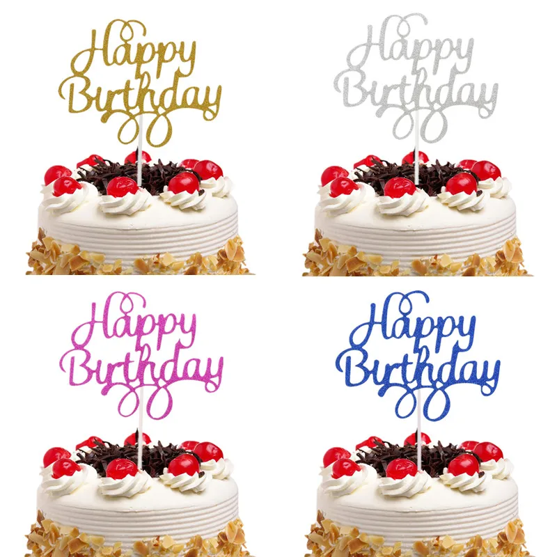 1 шт. креативный Топпер для торта, флаг, золото, серебро флаги с надписью Happy Birthday, одна палочка для дня рождения принадлежности для выпечки тортов