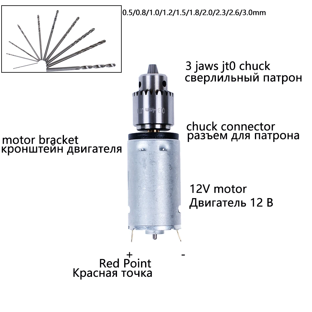 Мини-электродвигатель AUTOTOOLHOME, 12 В постоянного тока, для дерева, печатной платы, ручной сверлильный станок 0,5-3 мм, спиральные сверла и патроны JTO