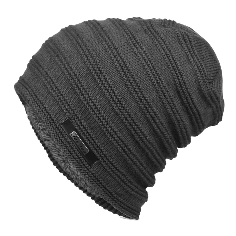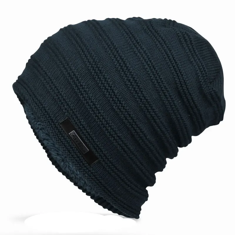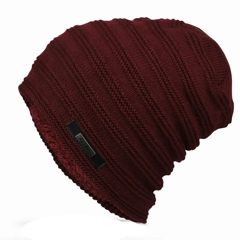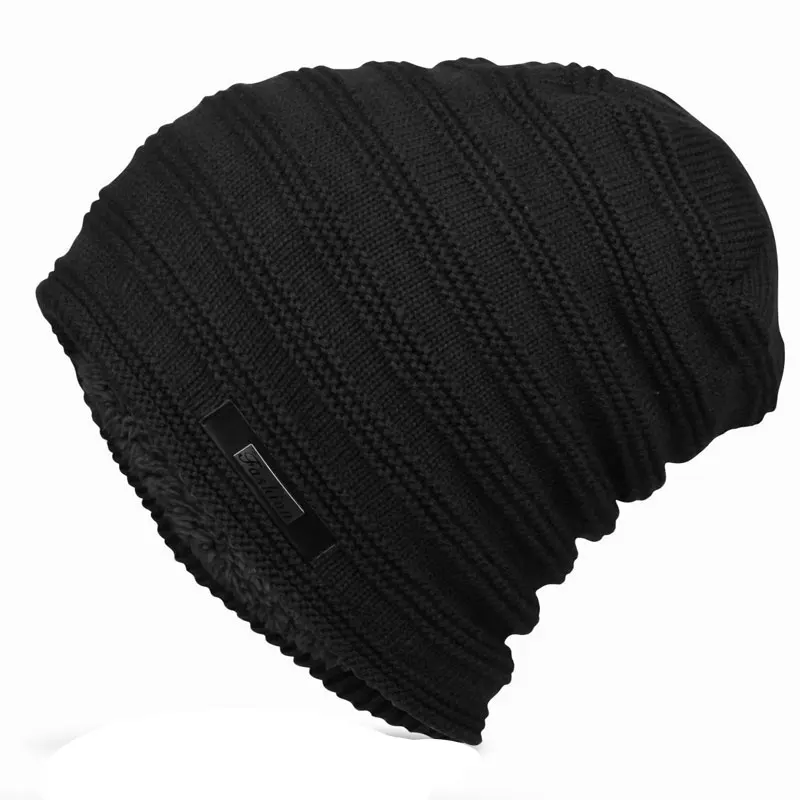 Мужские вязаные зимние шапки в полоску, длинная мешковатая шапка оверсайз, шапка с флисовой подкладкой, черная, серая, темно-синяя, темно-красная