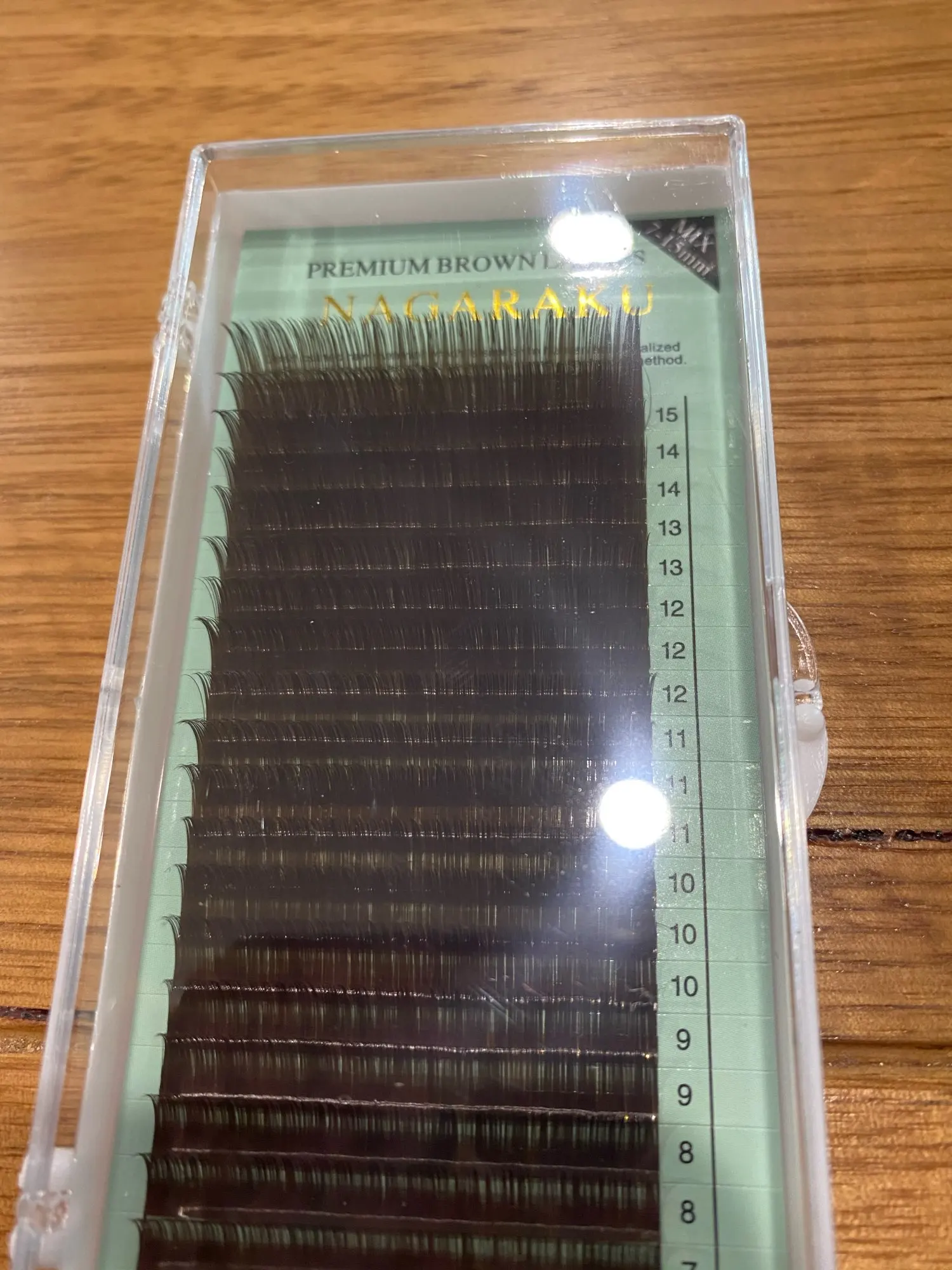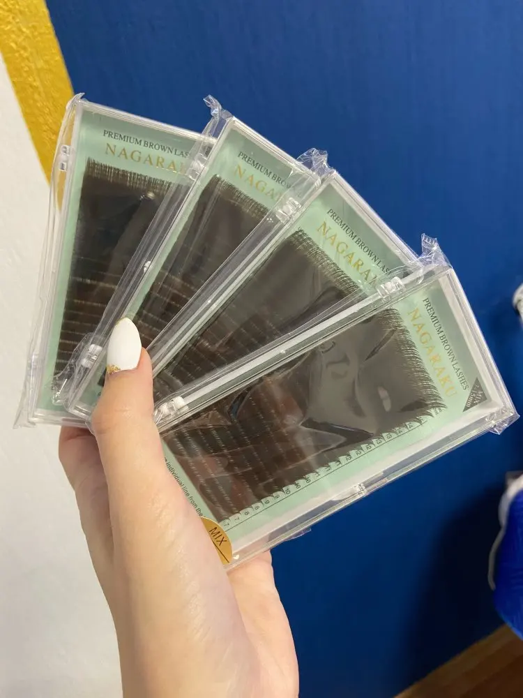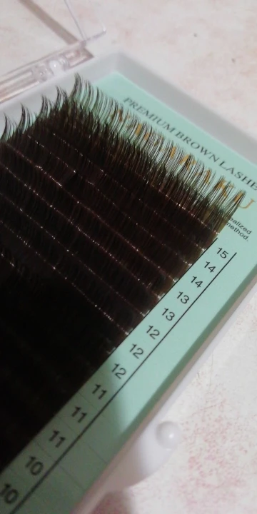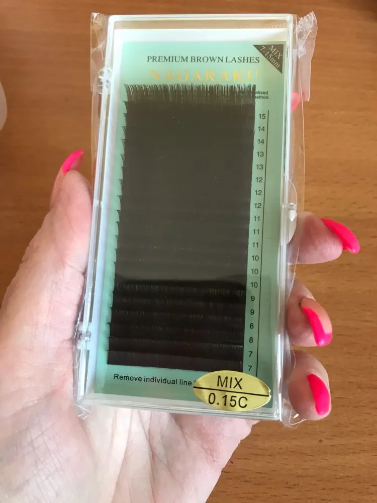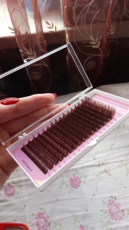 Супер быстрая доставка. Коричневые очень нахваливают , решила попробовать заказать с али, цвет темно коричневый. А изгиб «В» взяла чтобы с миксовать под эффект стрелки с изгибом «L». Толщина 0,12 как 0,10
