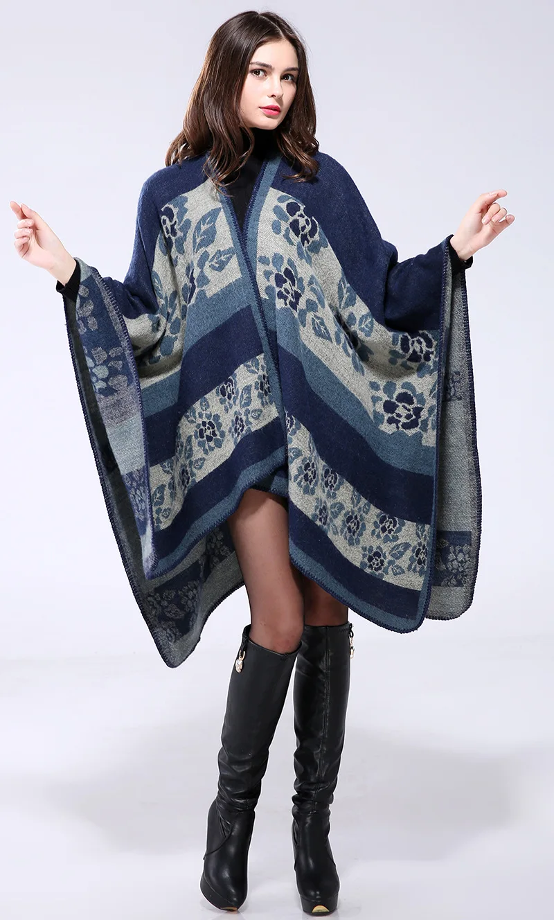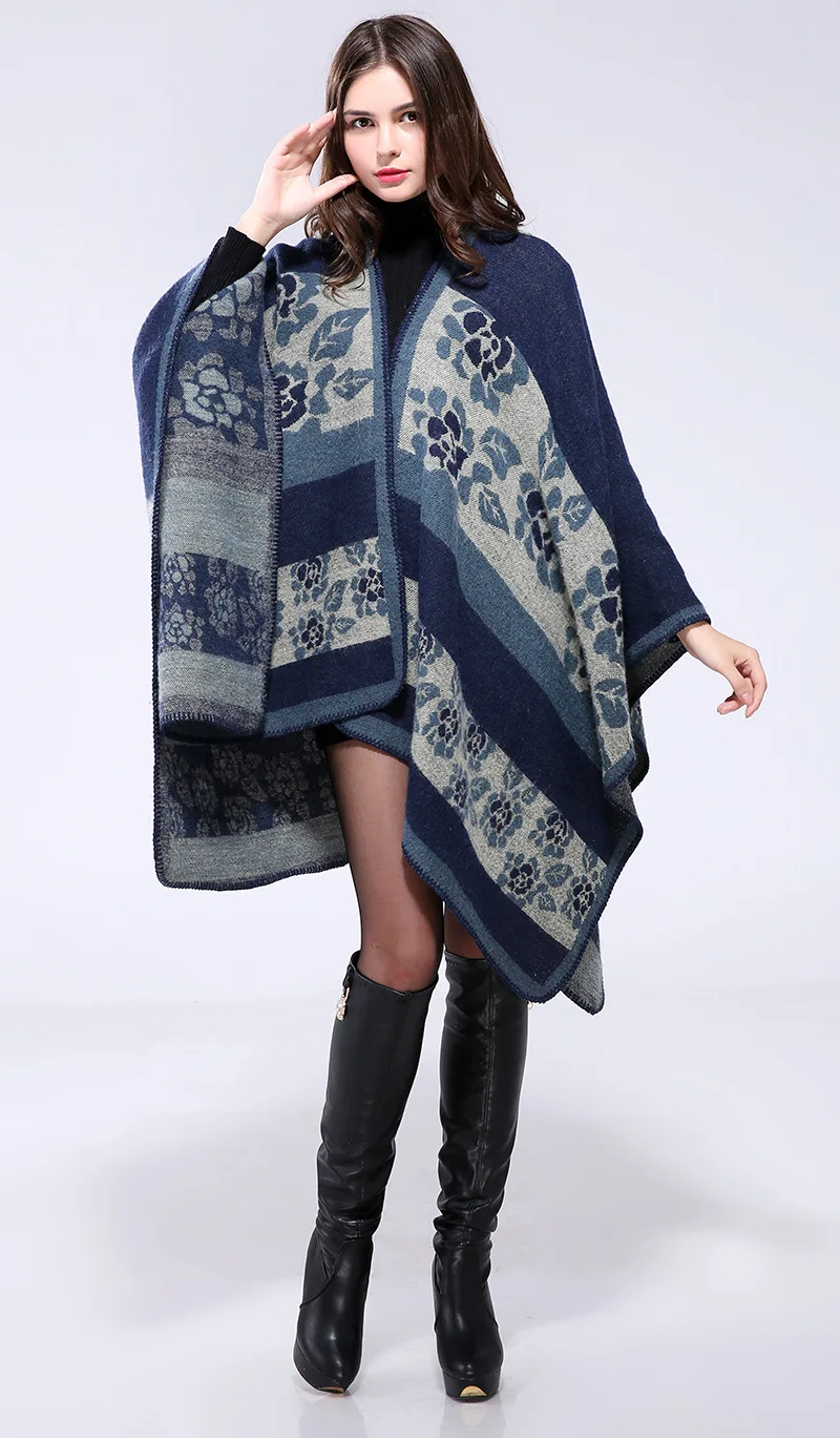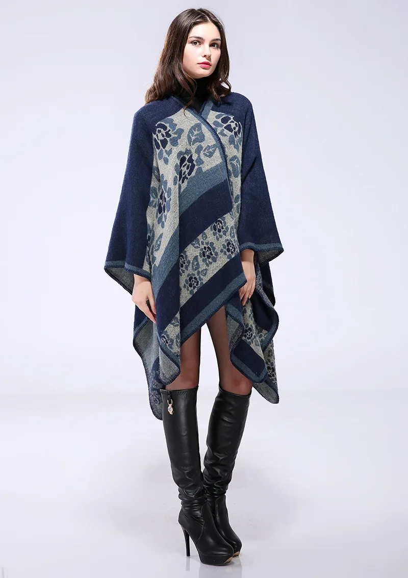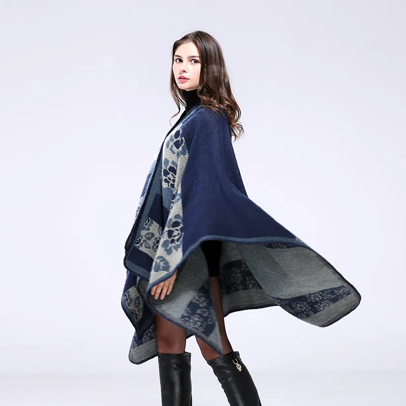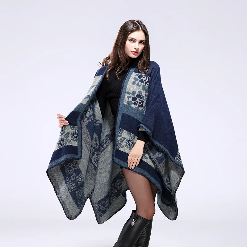Новый дизайн, кашемировый зимний шарф для женщин, длинная шаль с разрезом и цветами, теплая шаль из пашмины, Вязаная Шаль, накидка, пончо M181