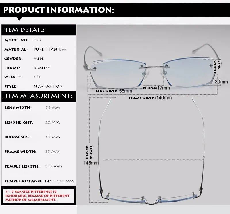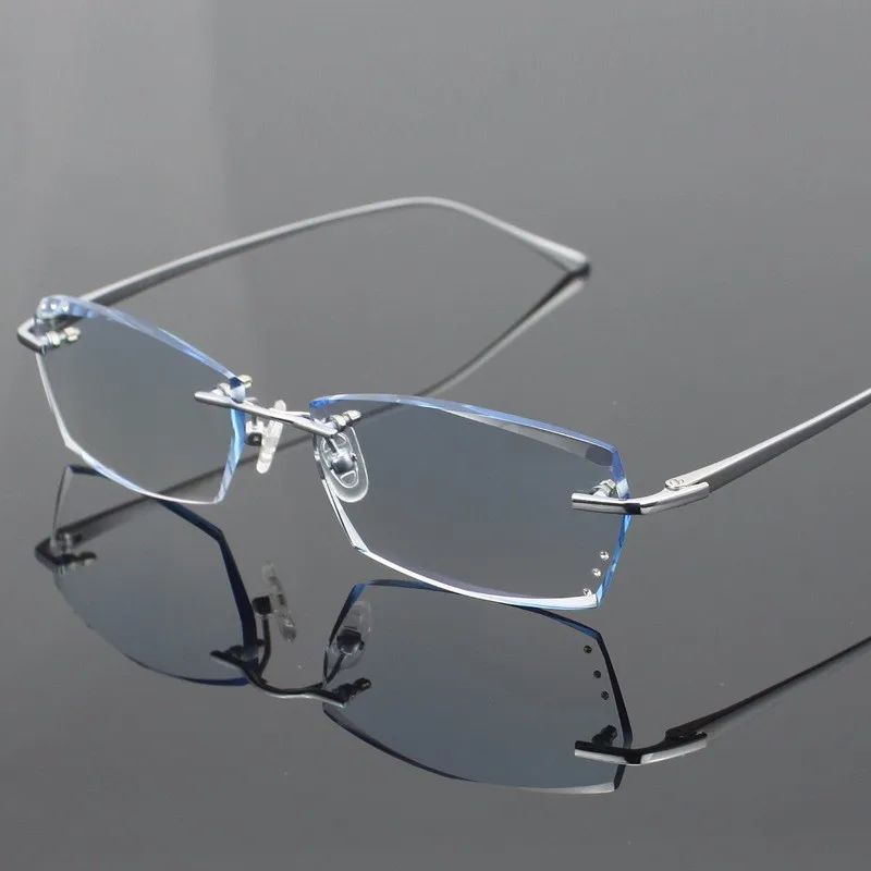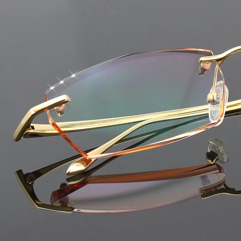 Чашма Алмазов Отделан Очки Мужчины Очки Без Оправы Кадров Оттенок Линзы Качество Оптических Стекол