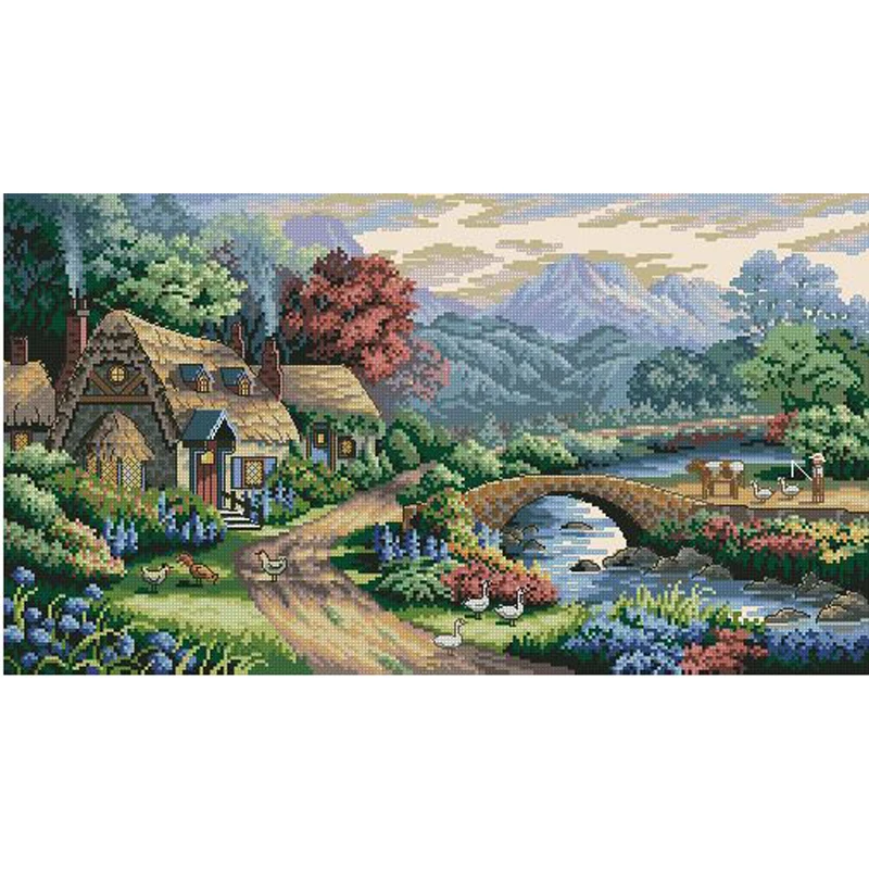 Высокое качество Горячая продажаСчетныйНабор для вышивки крестиком английская долина дачный мост деревенская деревня странаБесплатная доставка