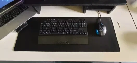 Коврик пришёл быстро. Особо резиной не воняет, но на столе держится плохо, скользит.