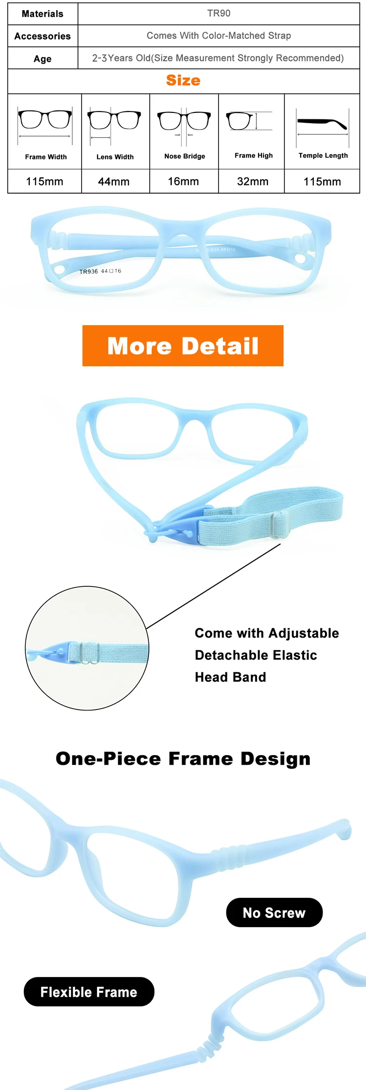 Гибкая оправа для детских очков, размер 4416 TR90, детские очки, без винтов, Небьющийся безопасный светильник, оптические очки для мальчиков и девочек