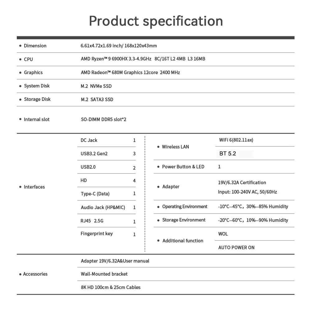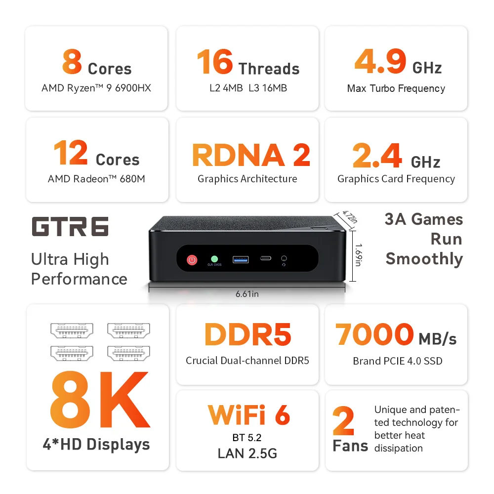 Beelink GTR6 R9 6900HX AMD Ryzen 9 GTR5 5900HX Windows 11 мини ПК для геймеров DDR4 32 Гб SSD 500 Гб компьютер двойной 2,4 Гбитс RJ45 DP Type-C