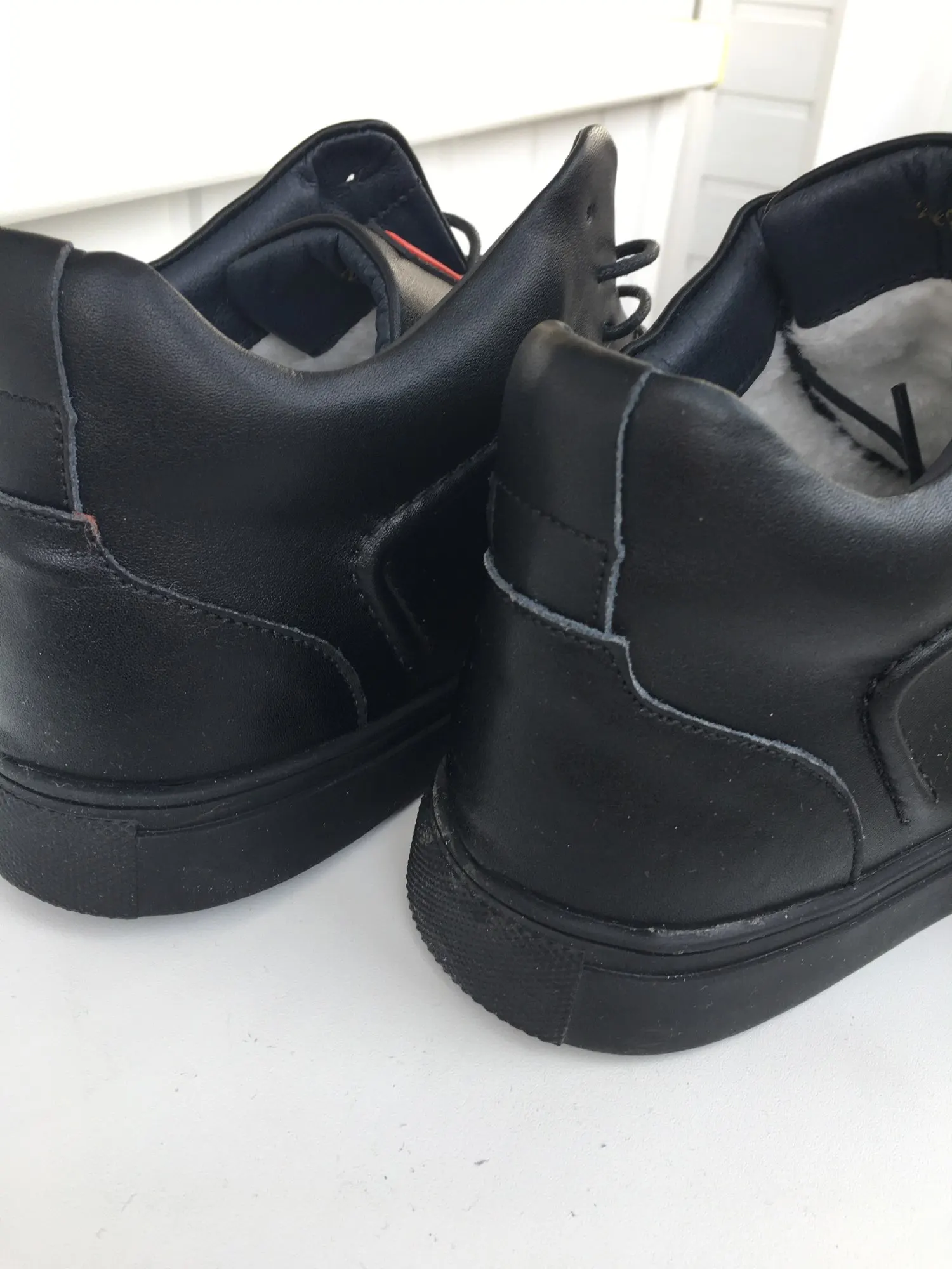 Взял на 1 размер больше как здесь в отзывах советовали, но они велики. Берите свой размер. А так, ботинки хорошие, кожаные, мех правда искусственный, тоненький