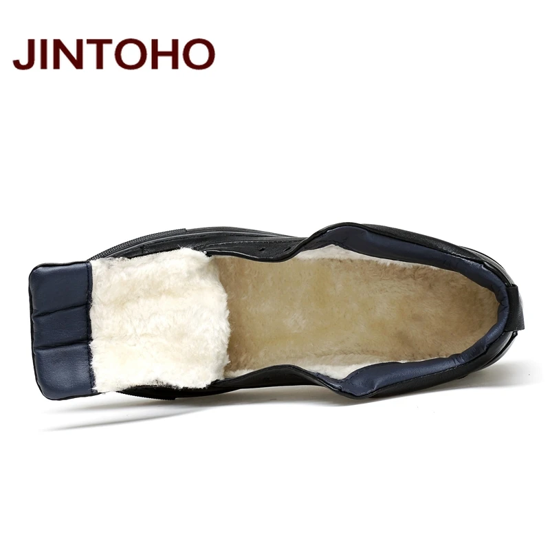 Мужские кожаные ботинки JINTOHO, черные повседневные ботинки из натуральной кожи, зимняя обувь, 2020