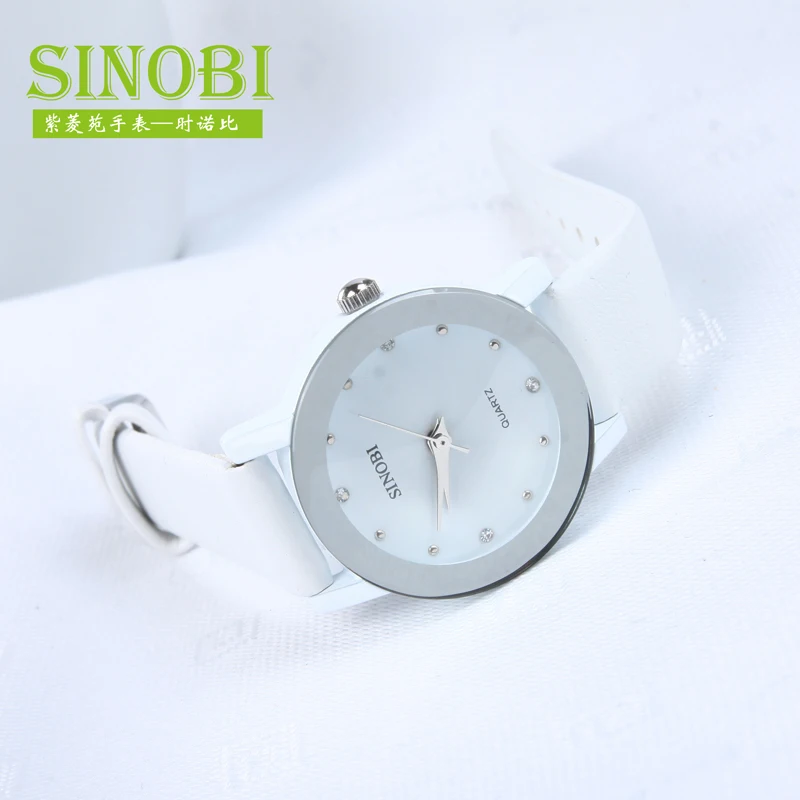 Часы наручные SINOBI женские, модные брендовые Роскошные с кристаллами, с ремешком из натуральной кожи