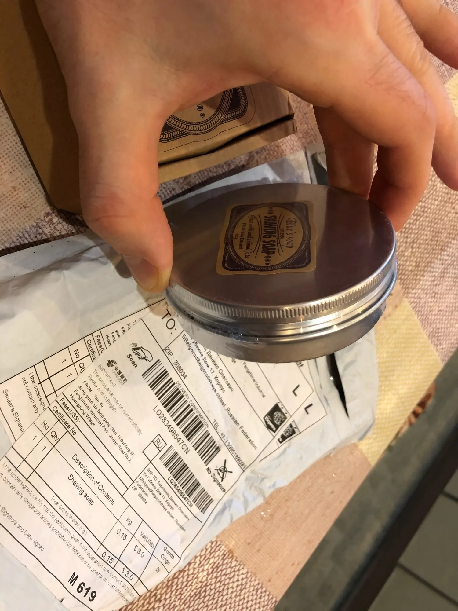 Посылка была в пути 60 дней, до Белгорода. Стоимость мыла >620 рублей за 100 грамм. Посылка пришла хорошо запакована, дефектов нет.Запах нейтральный , мыло как твёрдая шайба ( в бритье не пробовал ). Порекомендовать могу только тем кто хочет попробовать новое, за туже стоимость можно взять ТДС или Proraso в больших объёмах, и с доставкой за неделю по России.