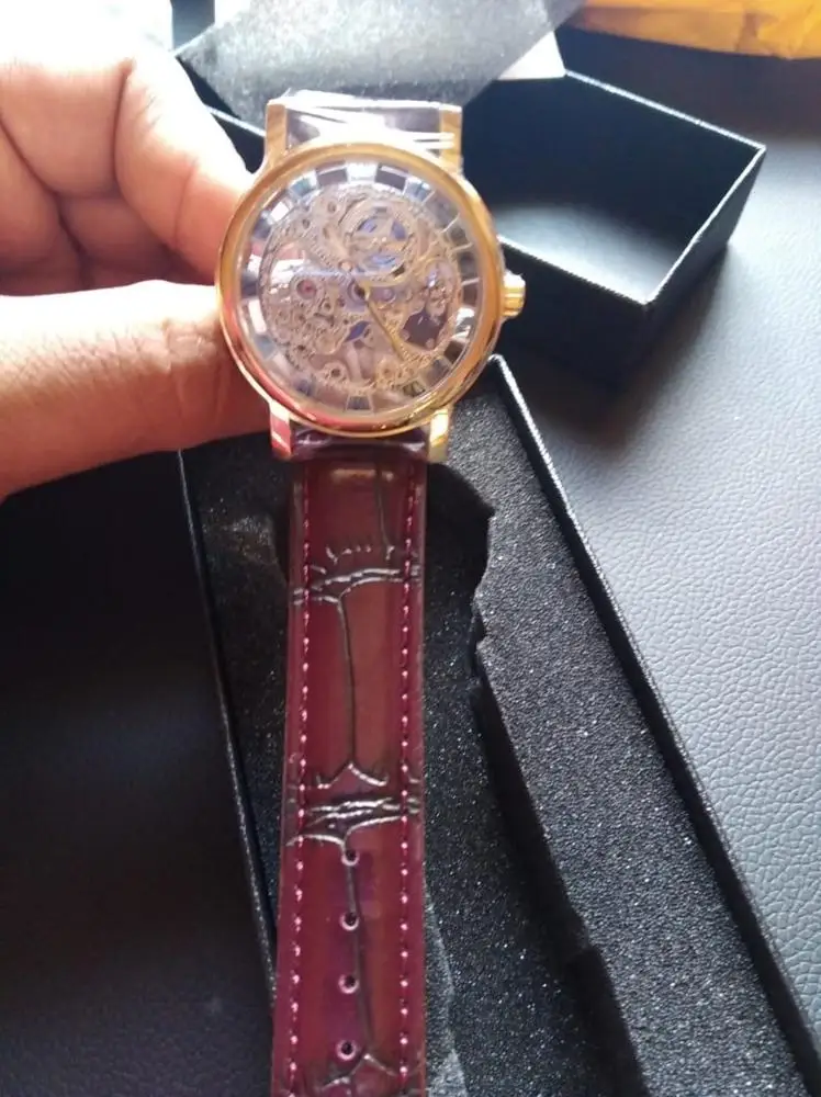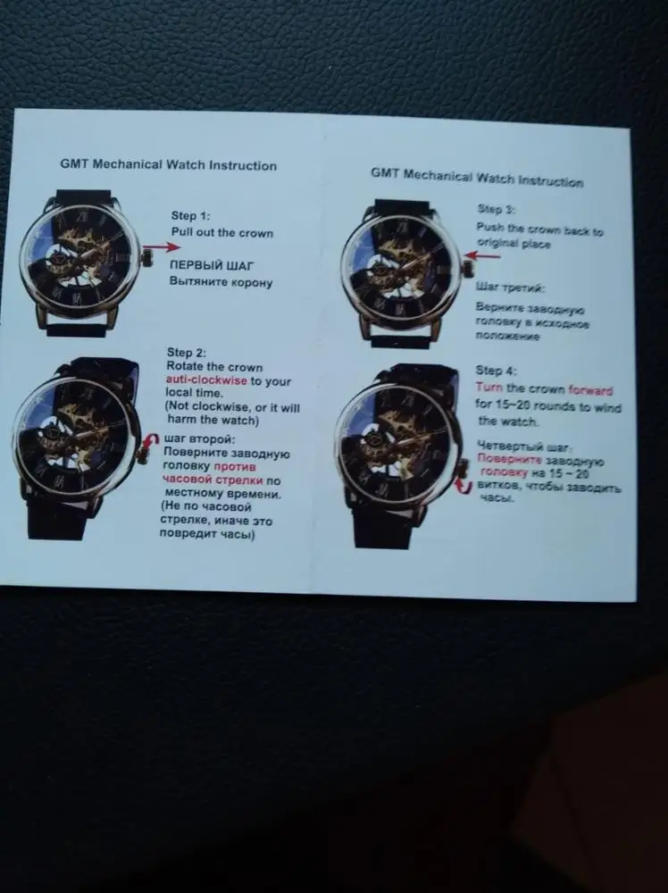 Часы смотрятся очень круто!!! Упаковано было очень хорошо ремешок и стекло все было обернуто несколько раз. Часы находятся в коробочке и есть инструкции на русском языке. . Часы механические и полностью прозрачные с обоих сторон. Прекрасно для подарков. ❤️❤️❤️Спасибо большое продавцу. Товар получила в течении месяца, трек отслеживался.