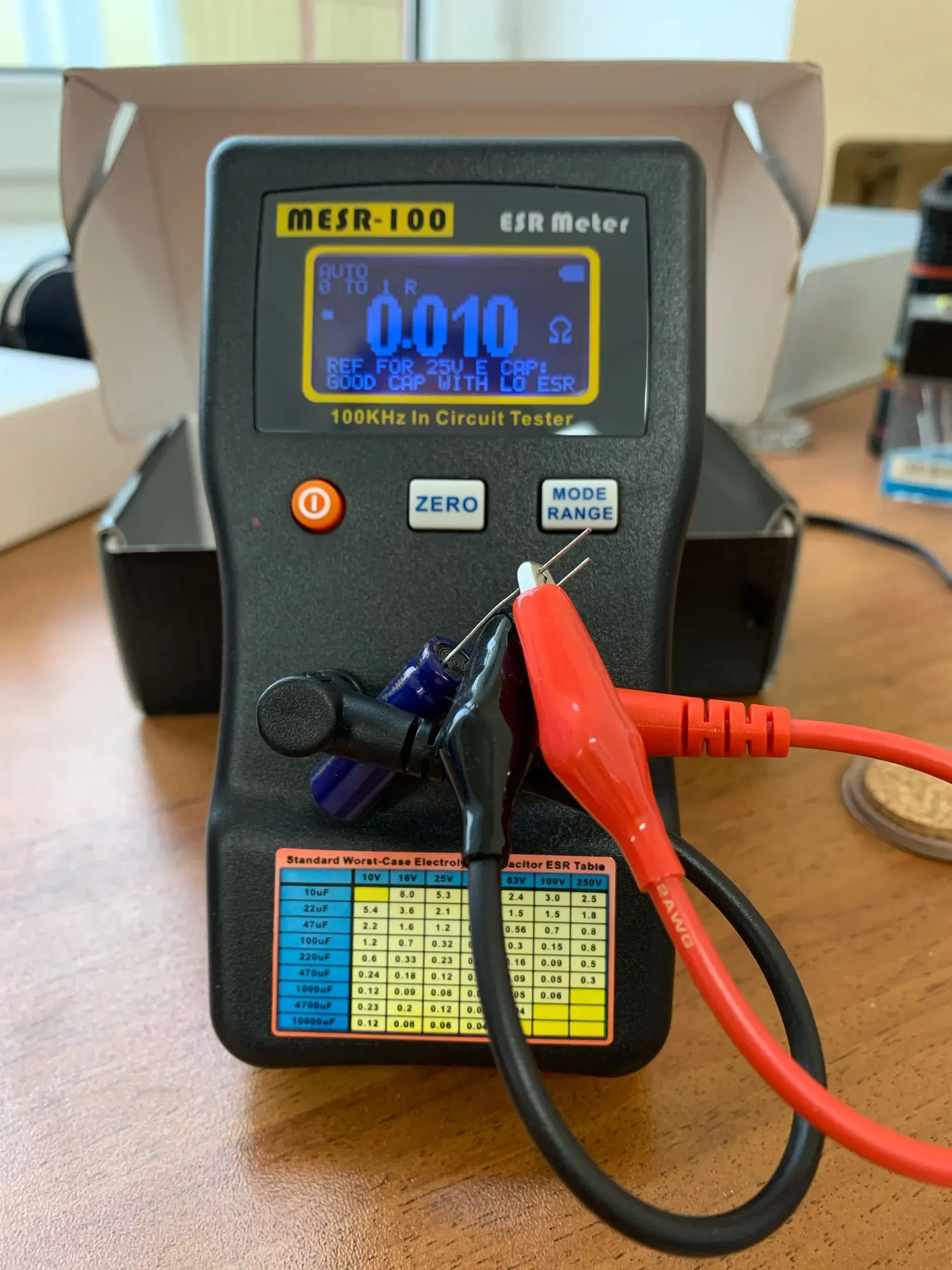 Очень быстрая доставка, за неделю до Москвы. Этот прибор меряет ТОЛЬКО сопротивление (ESR), для измерения ёмкости придётся покупать M6013 хитрые коммерсанты, наверняка всё можно было совместить в одном корпусе.