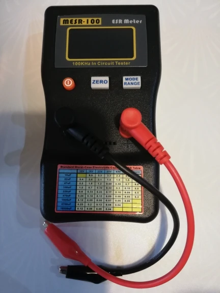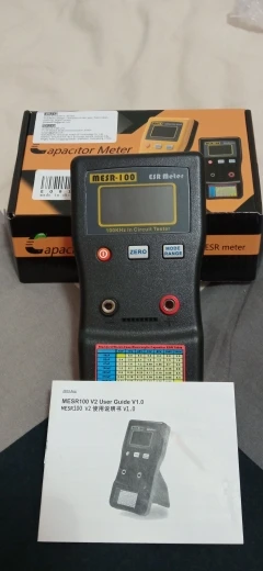 Счетчик важно иметь его в мастерской, так как ESR не измеряет его, если у вас нет такого, как этот. Он прибыл отлично упакованным с инструкцией по эксплуатации и пробными зажимами. Дисплей показывает идеальные показания и сообщает вам, если конденсатор в порядке или не кроме таблицы, которая приносит склеенный клей. Работает с двумя обычными батарейками АА. Очень счастлив. Единственным недостатком является транспорт здесь, в Испании, который не прибыл в указанный день.