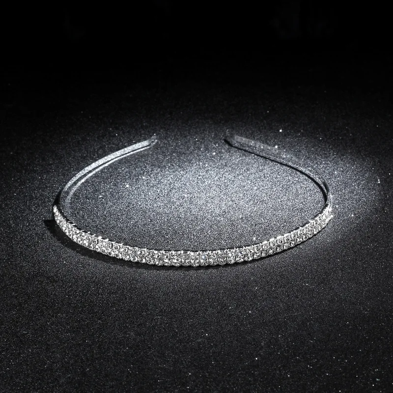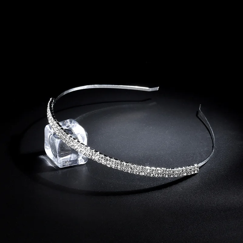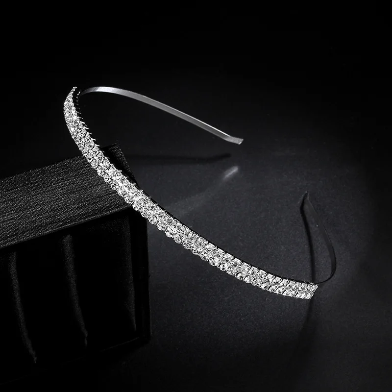 Блестящая свадебная тиара для подружки невесты и подружки невесты, 2 со стразами в ряд, повязка на голову серебряного цвета, аксессуары для волос на свадьбу и выпускной