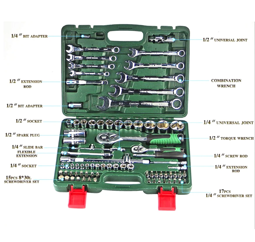 Набор ключей трещоточных, 82 шт., динамометрический ключ, 12 г., набор ручных инструментов для авторемонта, набор ключей DN105
