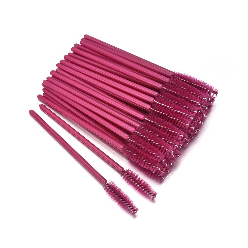 100 шт Кисть для макияжа из синтетического волокна одноразовые щеточки с тушью для ресниц Аппликатор палочка щетка косметический макияж инструмент цвета фуксии.