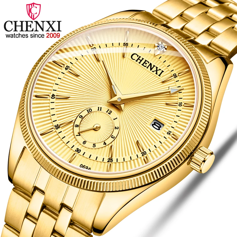 Часы мужские кварцевые с календарем, золотые, стразы