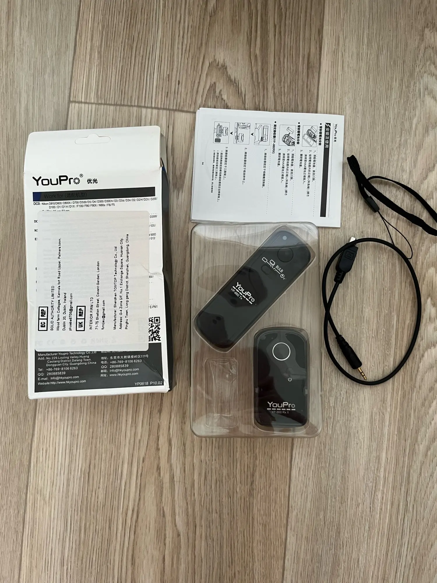 YouPro YP-860 камера дистанционный пульт принимает FSK 2,4 ГГц Беспроводная система управления, поддерживает один съемка, непрерывная съемка, лампы съемки и съемки задержки. Расстояние связи до 100 метров. Это отличный контроллер для фотографов. Особенности:Принимает системой FSK и Глобальный Бесплатная доставка по всему миру 2,4 ГГц частоты, стабильнее и надежнее.С 16 каналами, дистанция дистанционного управления до 100 метров.Поддерживает одиночную съемку, непрерывную съемку, съемку лампы и 4 секунды задержки съемки.Специальная конструкция с низким энергопотреблением, подходит для длительного использования.Поставляется с соединительным кабелем и ручным ремешком. Совместимость с:Для Nikon: DSLR D5000/ D750/ D7100/ D7200/ D7000/ D600/ D610/ D5500/ D3300/ D3200/ D3100/ D5300/ D5200/ D5300 Технические характеристики:Бренд: YouProМодель: YP-860 DC2Радиочастота: 2,4 ГГцМодуляции: FSKРасстояние связи: 100 мКаналом связи: 16Время работы передатчика: 1000 часовВремя работы приемника: 400 часовПередатчик Источник питания: 2*1,5 V AAA батареи (не входит в комплект)Источник питания приемника: 1*3 в CR2 батарея (не входит в комплект)Размер передатчика: 9,5*3*1,5 см/3,7*1,2 * 0.6inРазмер приемника: 6*3,6*2,8 см/2,4*1,4 * 1.1inВес изделия: 25 г/0,87 унций (передатчик); 26 г/0,92 унций (приемник)Размер упаковки: 16,3*10*3,8 см/6,4*3,9*1,5 дюймовВес упаковки: 115 г/4 унции Примечание:Батарейки в комплект не входят. В комплект входит:1 * передатчик1 * приемник1 * соединительный кабель с разъемом USB1 * ремешок на руку1 * Руководство пользователя (английский и китайский)