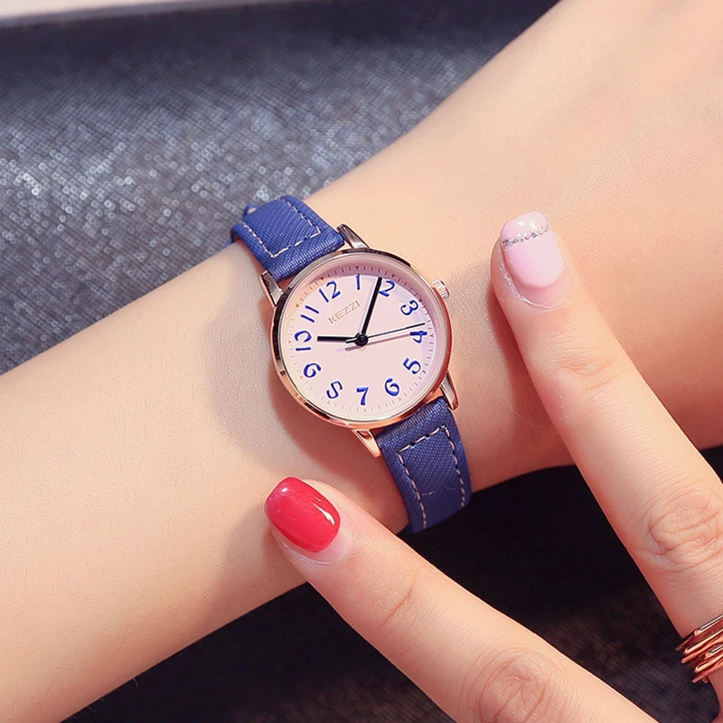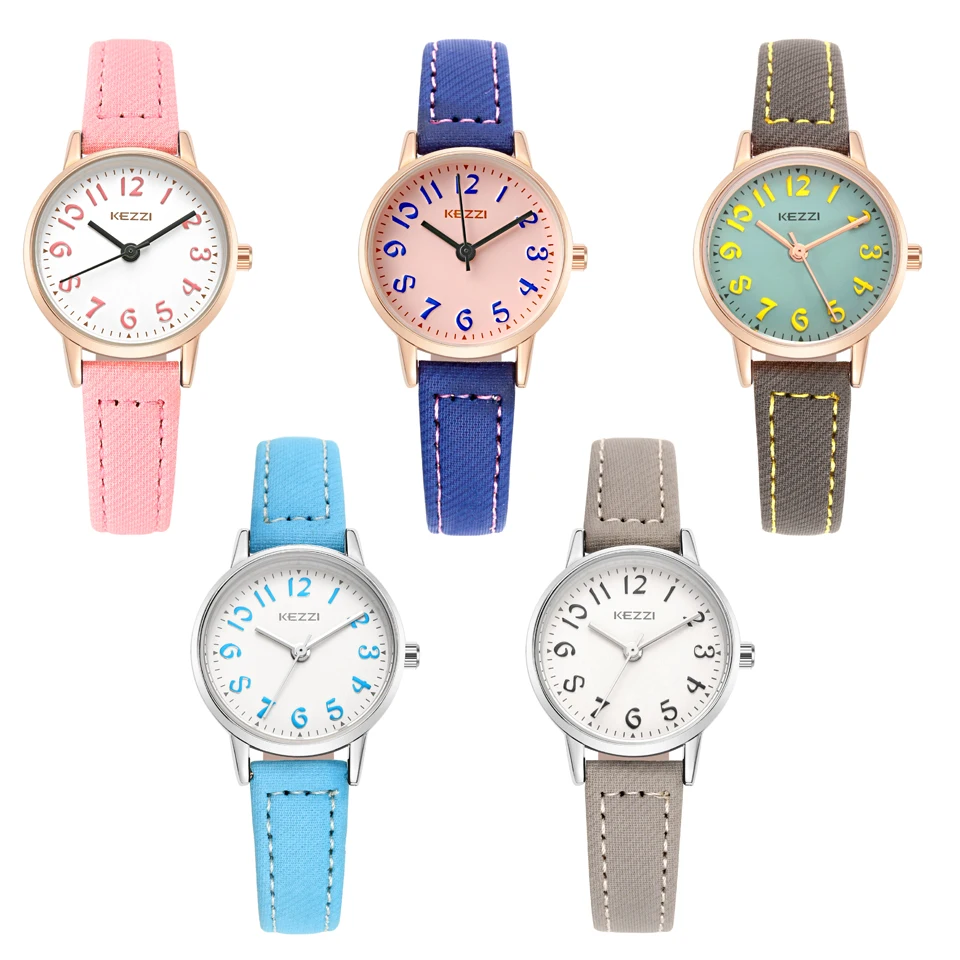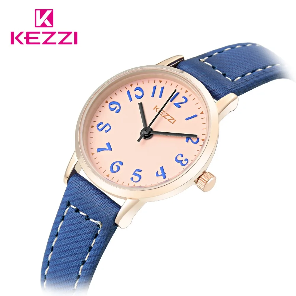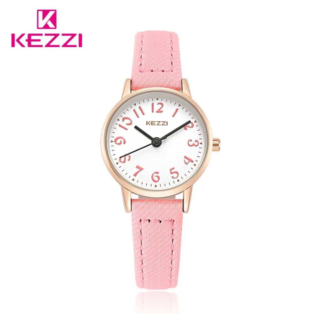 KEZZI брендовые повседневные часы, кожаные женские часы с простым циферблатом, японские водонепроницаемые кварцевые наручные часы, Montre Femme