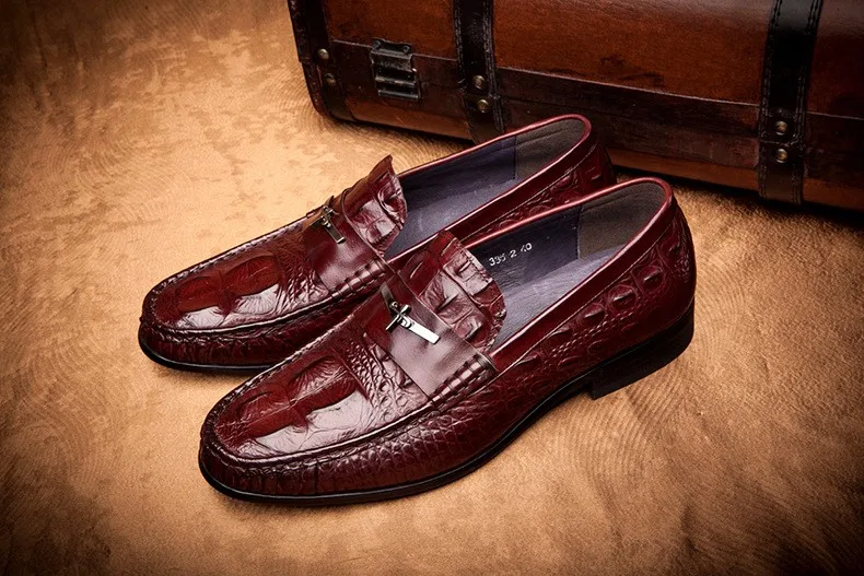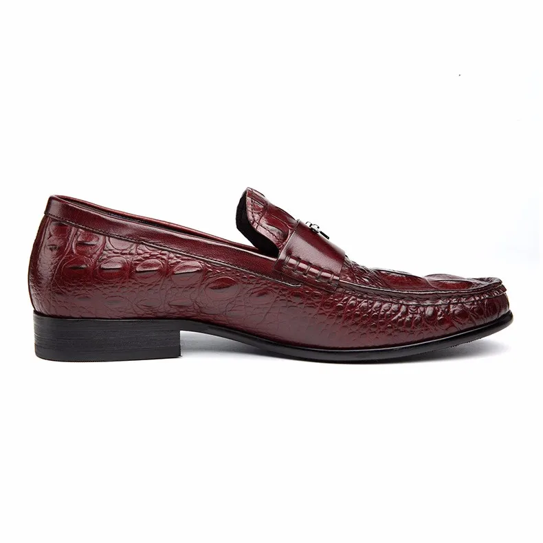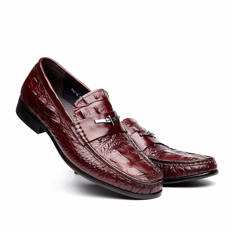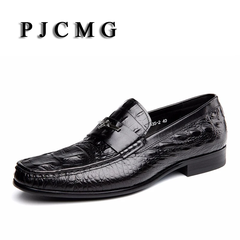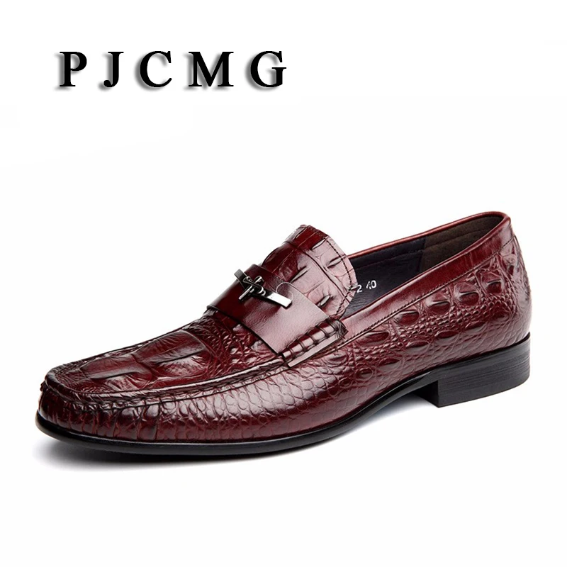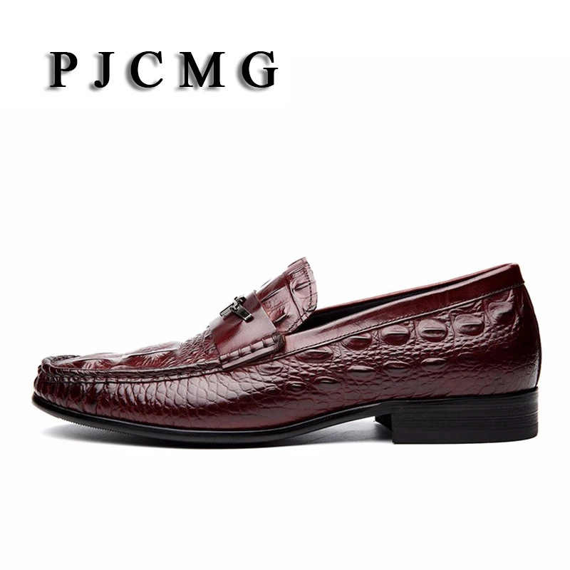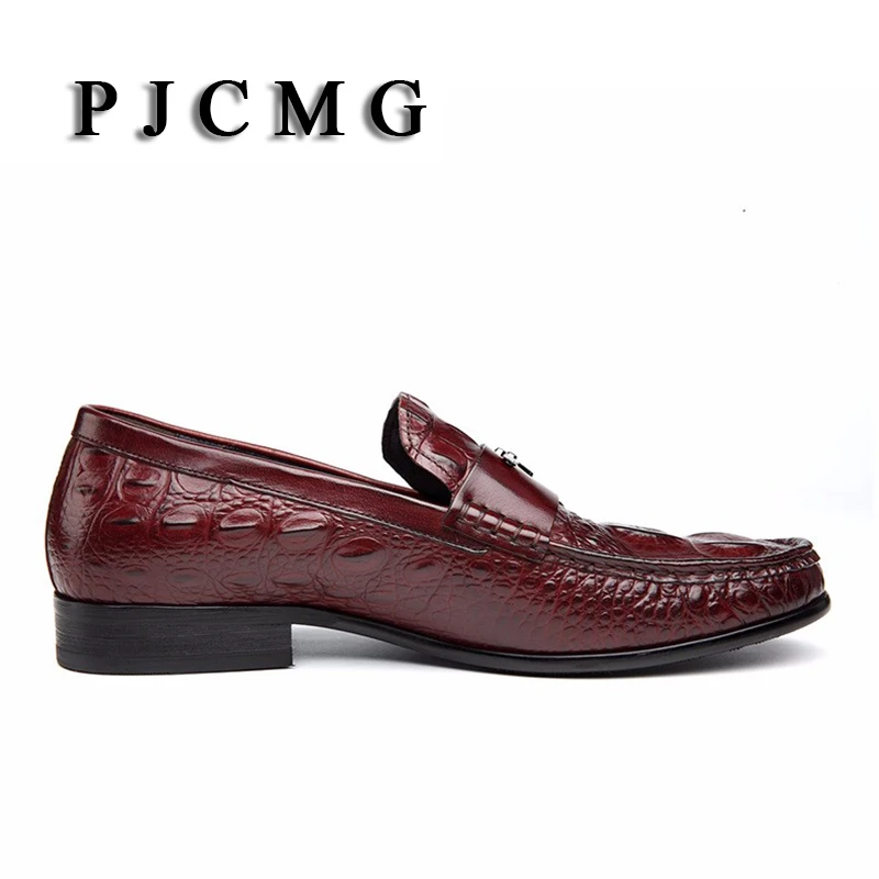 Мужские модельные туфли PJCMG, черныекрасные дышащие Туфли-оксфорды из натуральной кожи с узором крокодиловая кожа, на шнуровке, без застежек