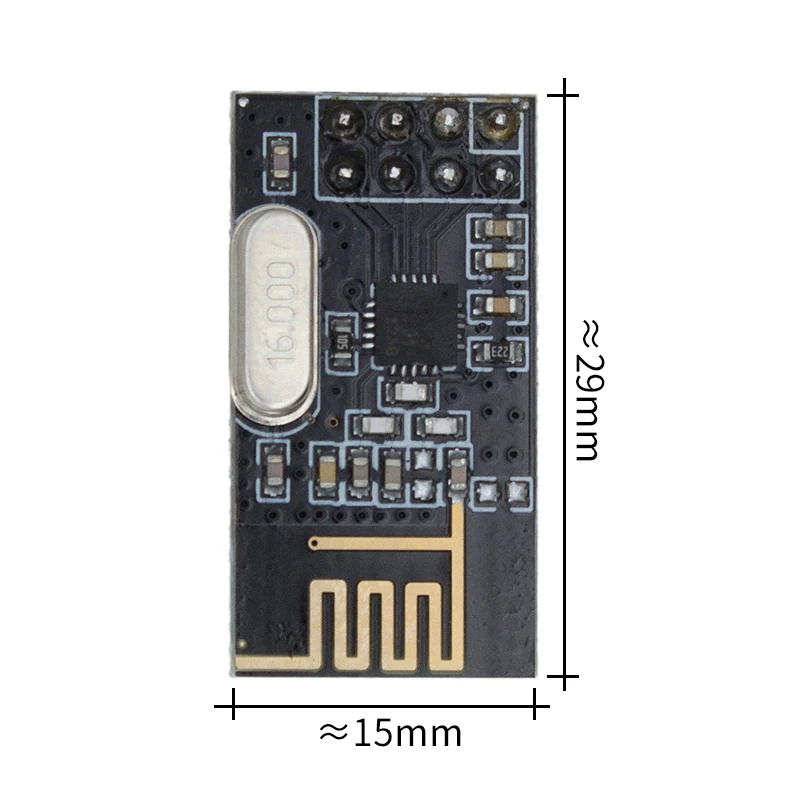 NRF24L01 представляет собой работы в 2,4-2,5 ГГц по всему миру ISM полоса однокристальный приемопередатчик "блок управления, беспроводной приемопередатчик, в том числе: генератор частоты Улучшенный регулятор режима schokbursttm усилитель мощности кристаллический усилитель модулятор демодулятор Выбор выходного канала мощности и протокол, установленный SPI интерфейсом для установки очень низкого потребления тока, Более низкий режим потребления тока 12.3 мА режим отключения питания и режим ожидания, когда в режиме передачи мощность излучения 6dBm, когда потребление тока составляет 9,0 мА приемная модель.