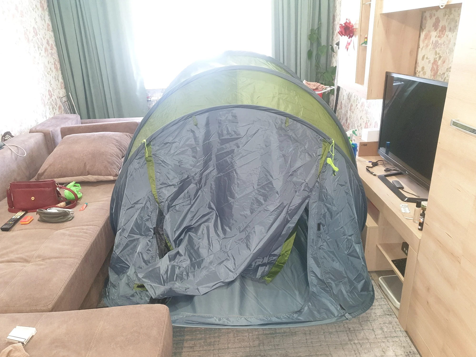 палатка огромная, собрал назад в чехол по видео с Ютубом, без него неоеально. опробую на вылазке, пока всё ок