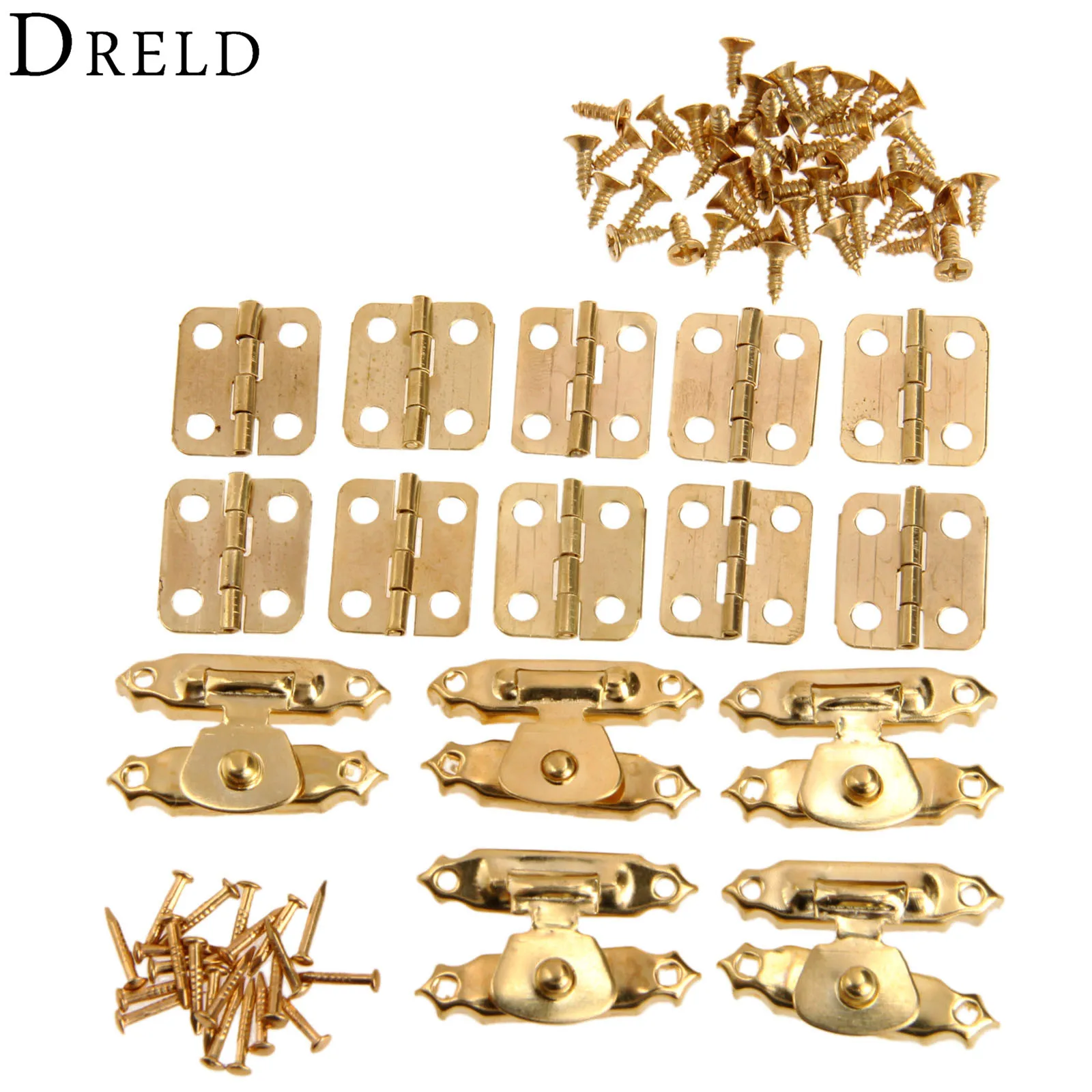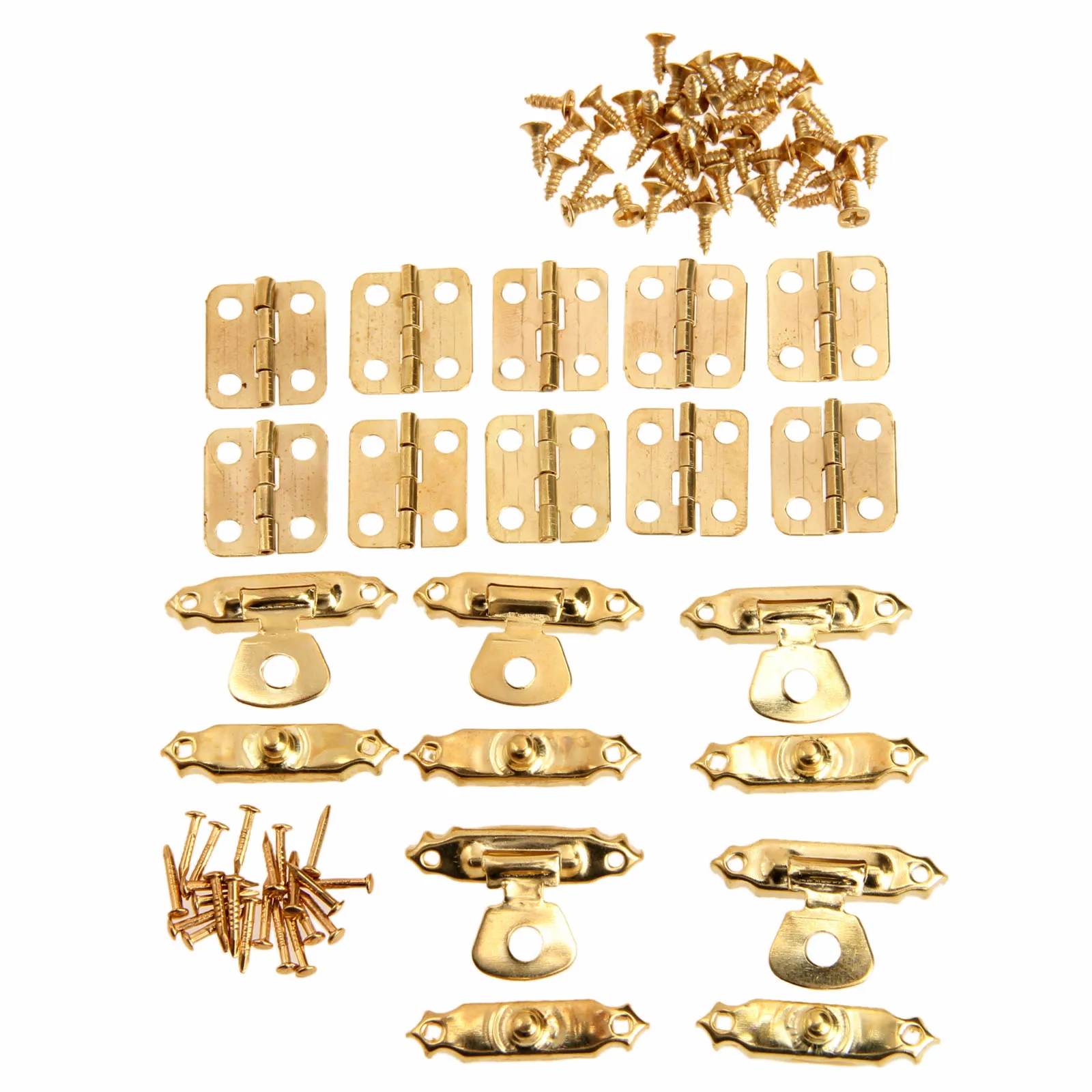 5 шт. Ювелирное Украшение из антикварного золота деревянная Коробка Чехол Переключить Засов защелка + 10 шт. шкафных петель железа в винтажном стиле мебельная фурнитура Аксессуары