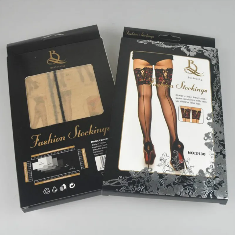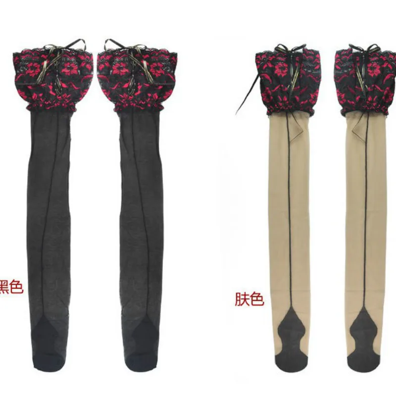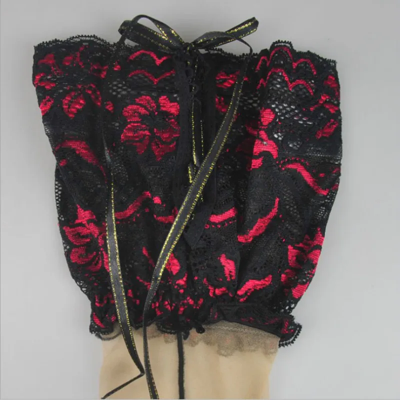 Чулки женские кружевные с широким силиконовым верхом и золотой завязкой