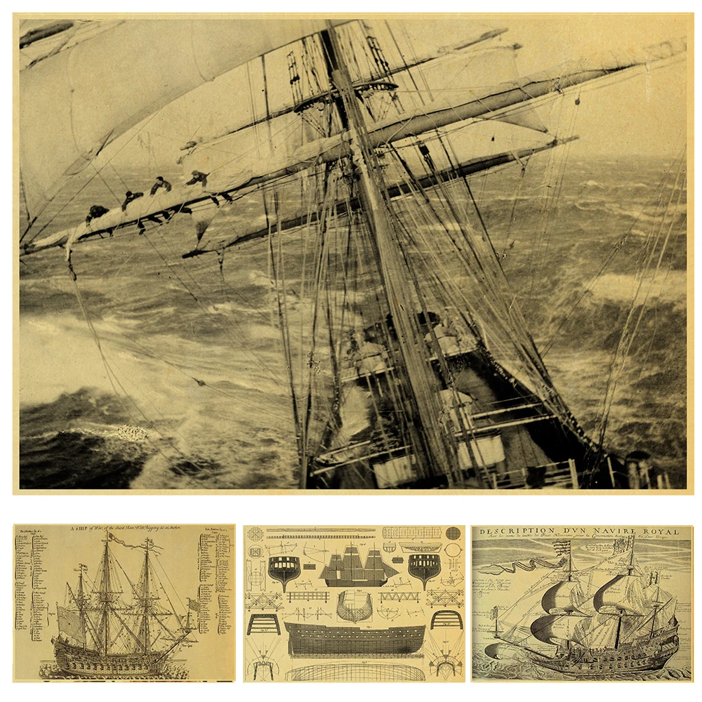 Постер в стиле ретро, древняя карта военного корабля, морская карта, украшение для дома, рисунок ядра, подвесная картина, комикс, корабль, фотообои