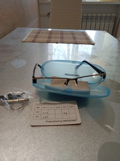 Заказываю второй раз в этом магазине, все отлично, заказал оправу и линзы, причем разного номинала! Все отлично сделали, в комплекте отверточка в виде брелока, запасные штучки (не знаю как называются, чтобы на нос не давило), тряпочка и дешевенький пластиковый футляр. Я всем доволен! Рекомендую!!