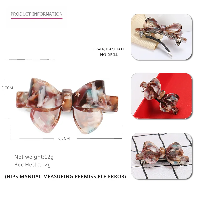 Элегантная заколка для волос с разноцветным бантом, изысканные аксессуары для повседневной жизни, заколки из ацетата