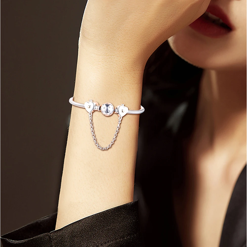 Браслеты с подвесками Пандора, ювелирные изделия из стерлингового серебра 925 пробы, бусины на цепочке с 14 каратным настоящим золотом, бесплатная доставка