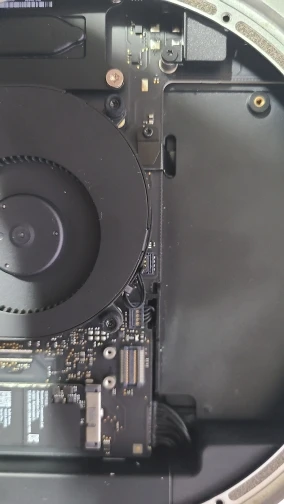 Верхний диск или нижний -- это все относительно. По факту этот шлейф для диска, который глубже в корпусе миника, а не рядом с антенкой. Короче, новый SSD увидился, ФьюжнДрайв заработал. Качество хорошее, можно брать. Цена раза в три-четыре ниже московских, что особо радует мою жабу.