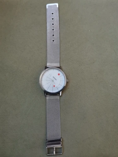 Креативный дизайн,добротно сделаны,ход точный.Потребовалось заменить батарейку,родная севшая.Ремешок симпатичный,но формфактор данного ремешка спорный,миланское плетение с классической застёшкой-спорно.Доставка быстрая,повреждений нет.Рекомендую.